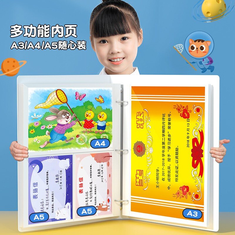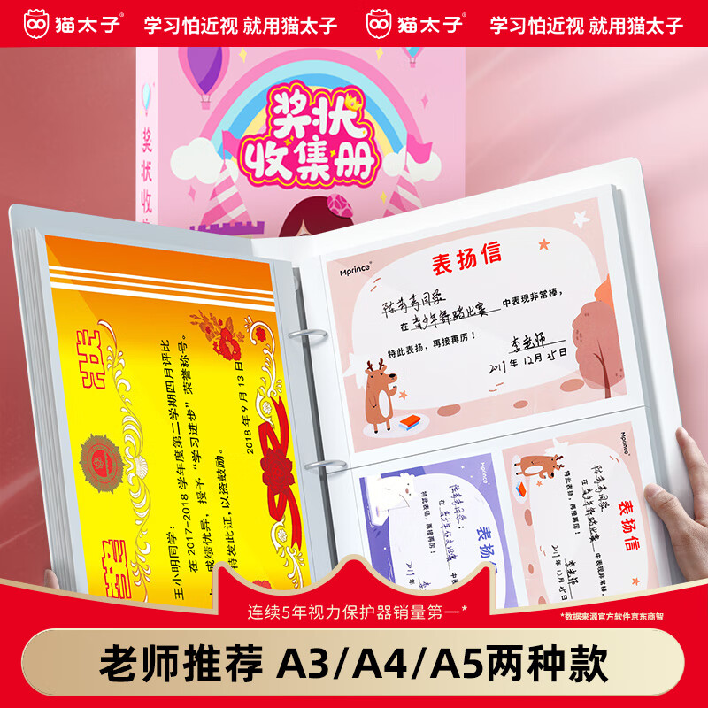 猫太子a4奖状收集册大号画册男孩荣誉证书收纳收藏儿童小学生女孩装放奖状挂墙展示升级款M1190 件 粉色