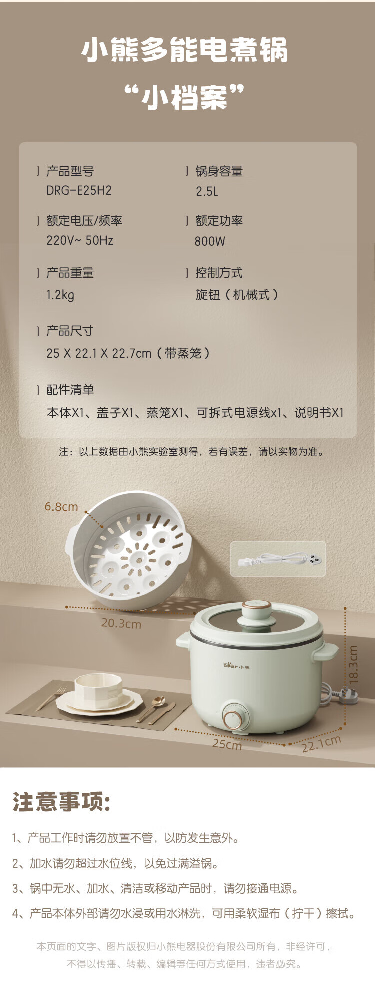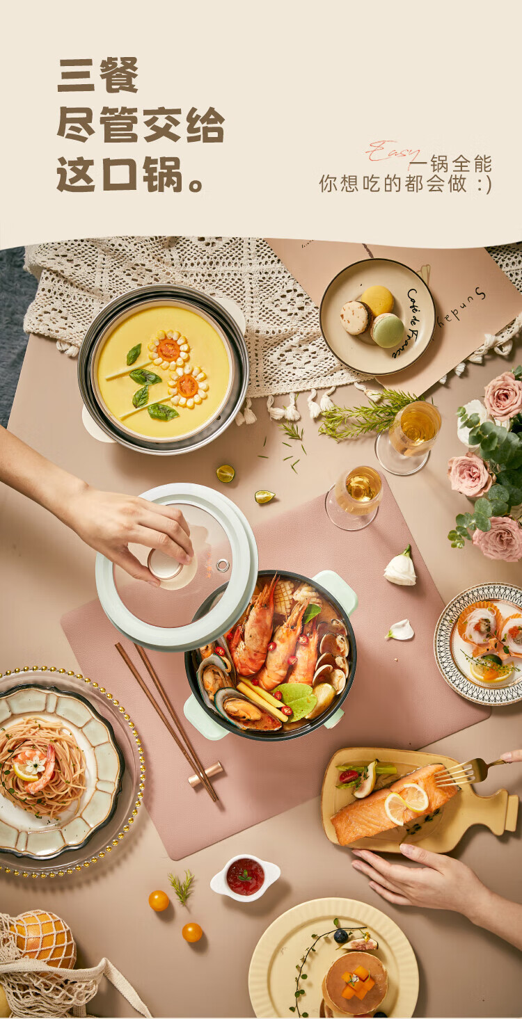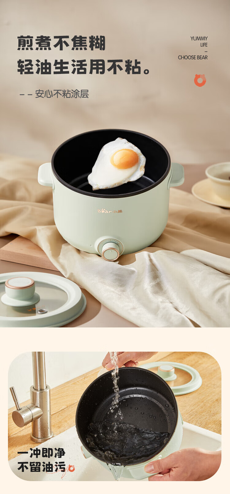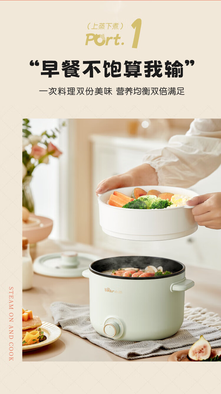 小熊(Bear)2.5L电煮锅多功能多用途电热锅 DRG-E25H2/台 浅绿色