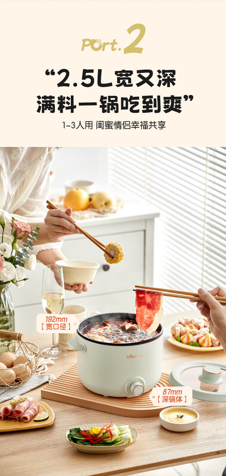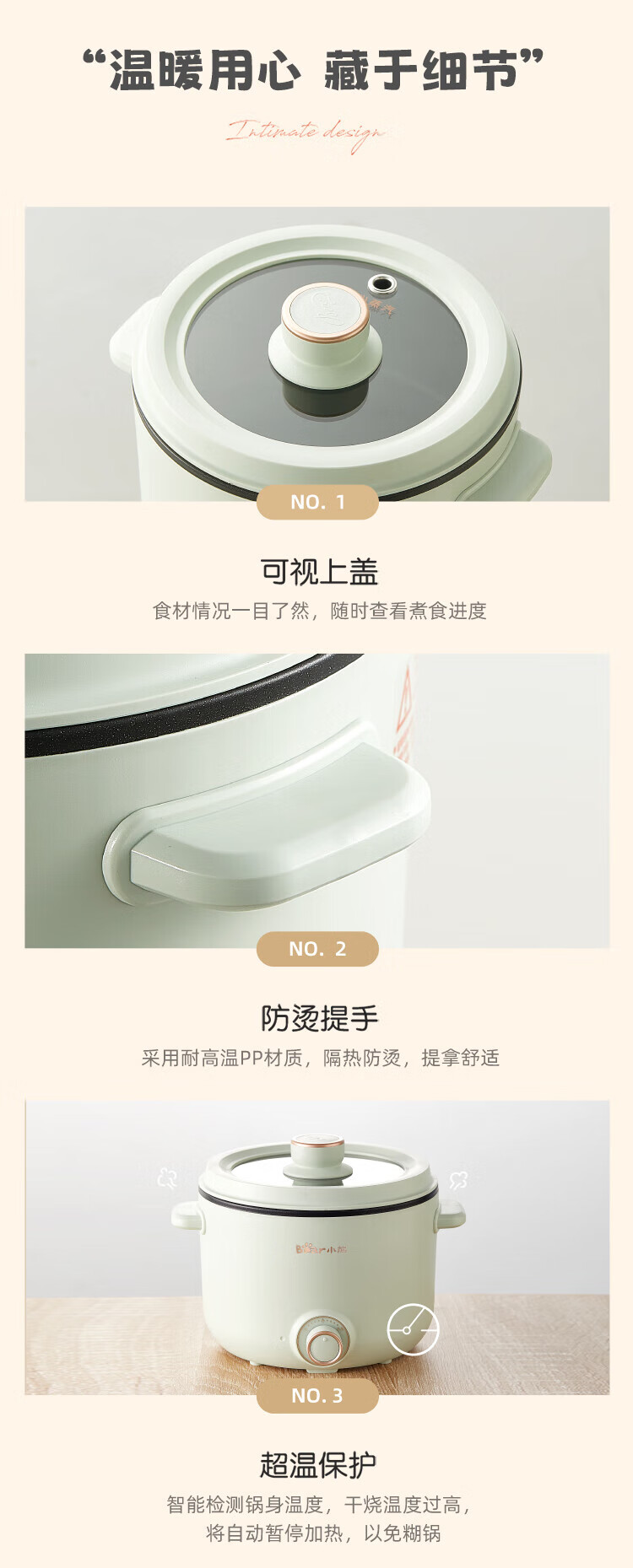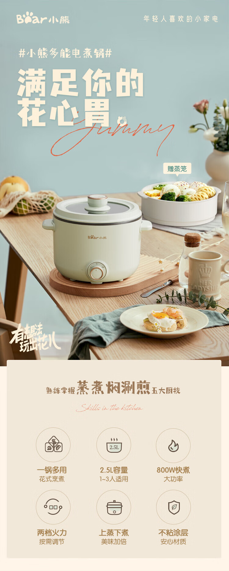 小熊(Bear)2.5L电煮锅多功能多用途电热锅 DRG-E25H2/台 浅绿色
