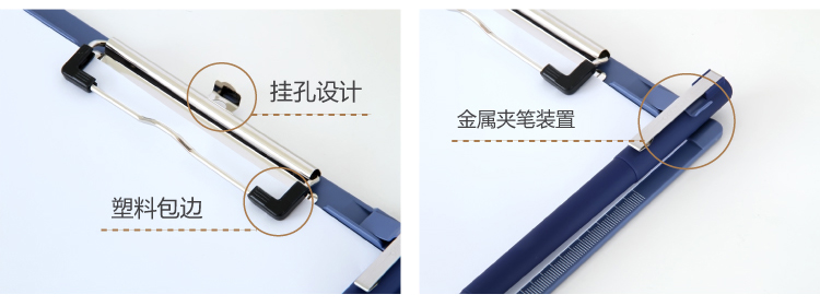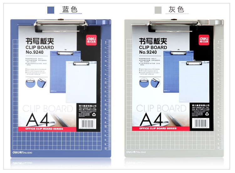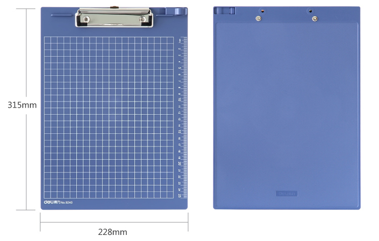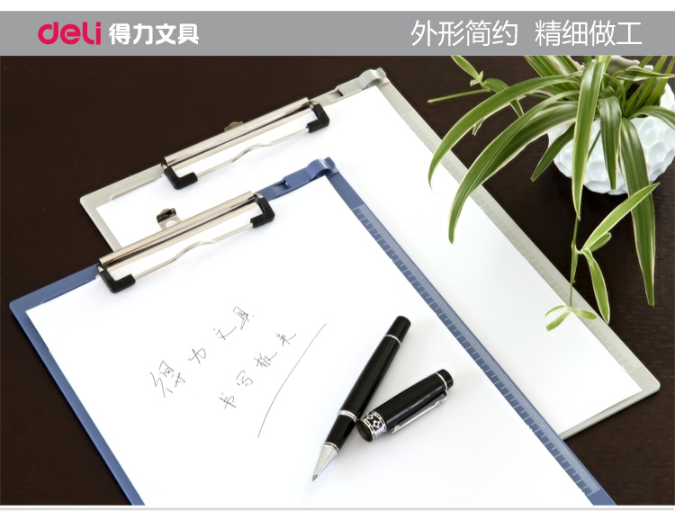 得力(deli)A4带刻度金属商务便携强力夹写板夹/写字垫板/试卷资料收纳夹 深蓝9240 单位:个 蓝色