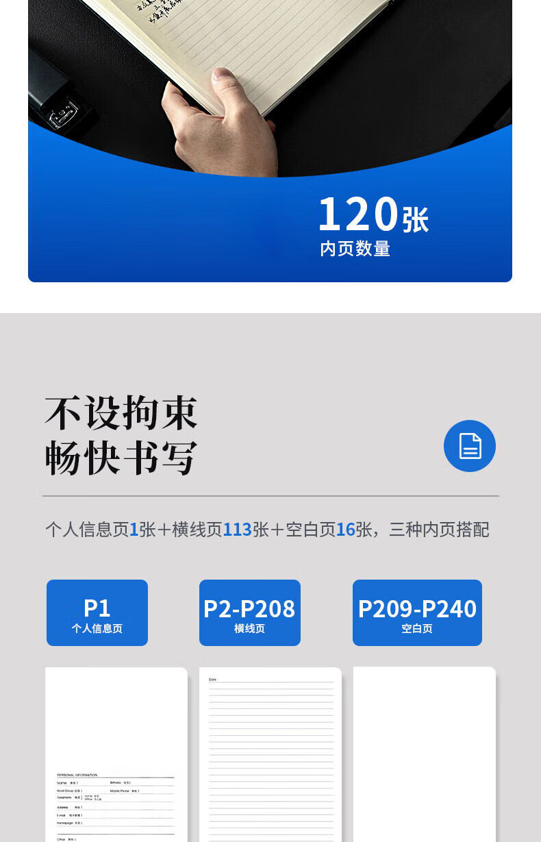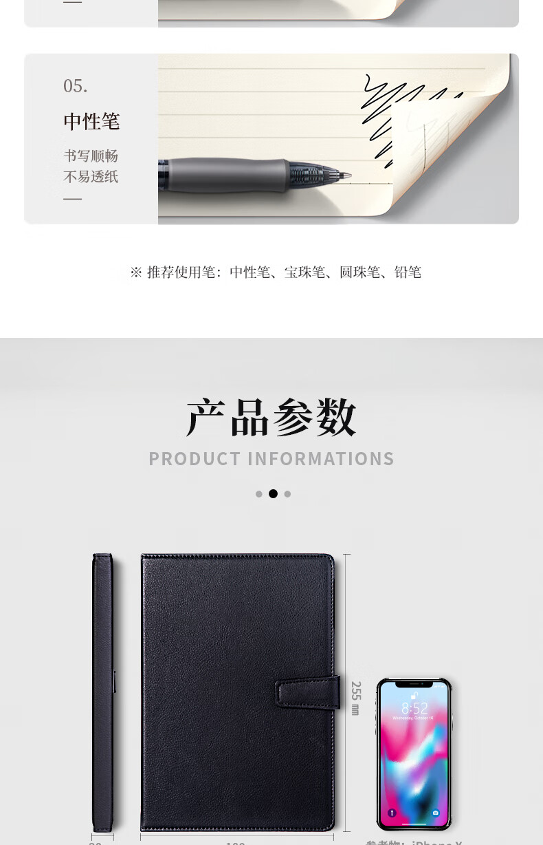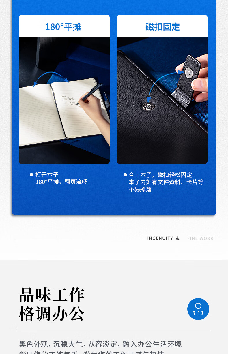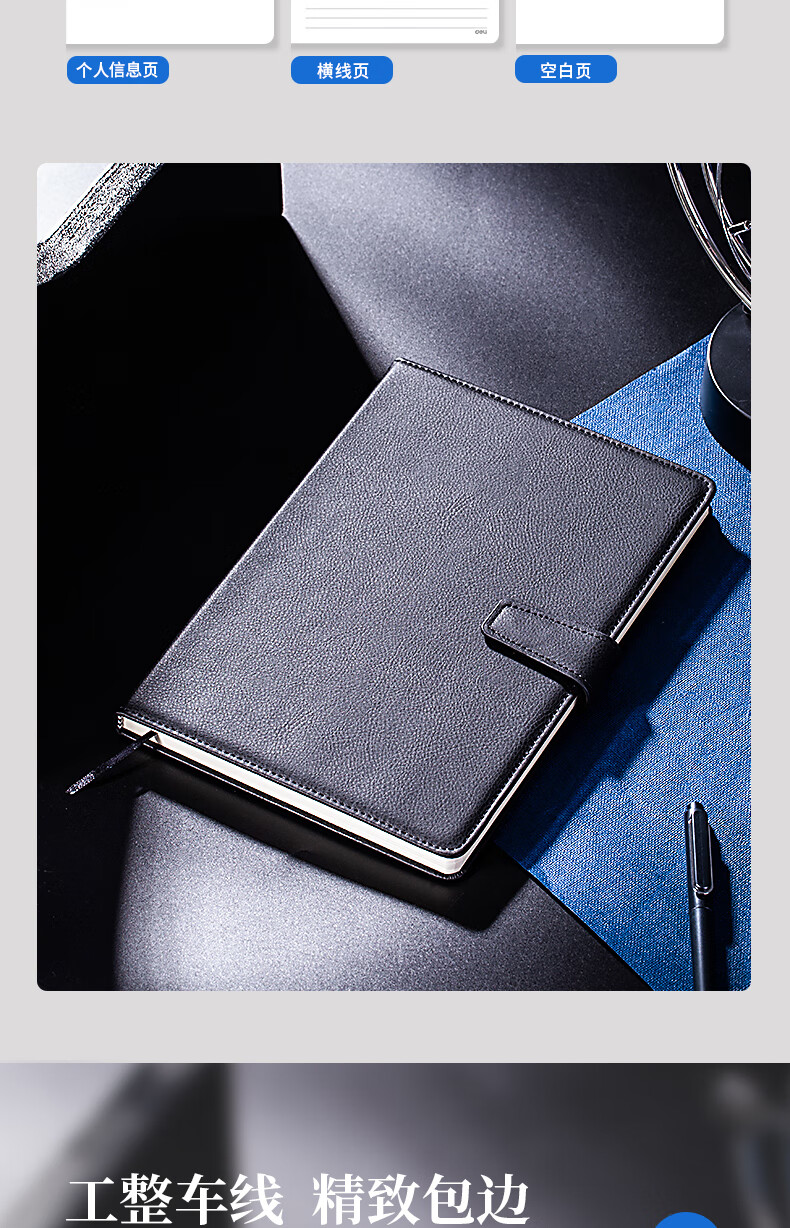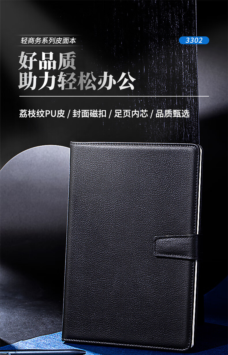得力(deli)16K120张商务磁扣皮面本办公用品新年礼物 工作记事本日记本3302 单位:本 黑色
