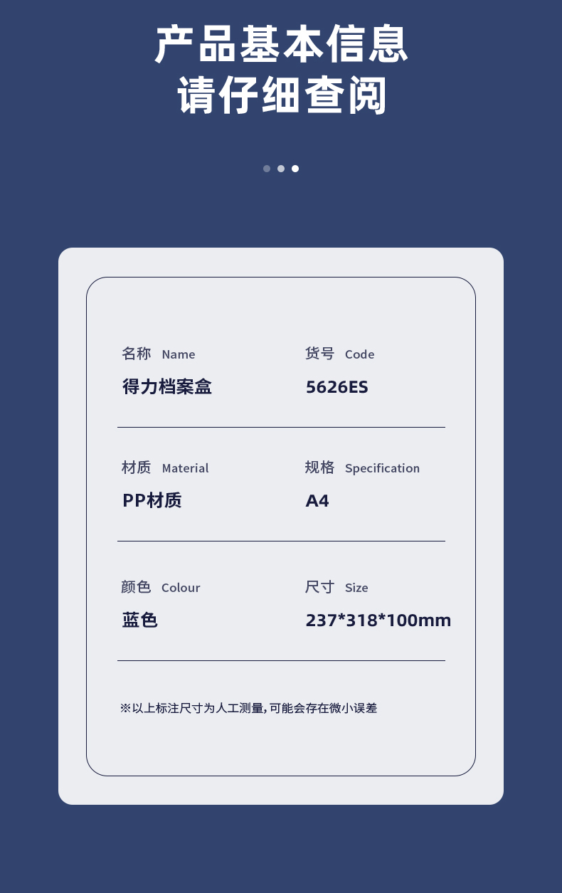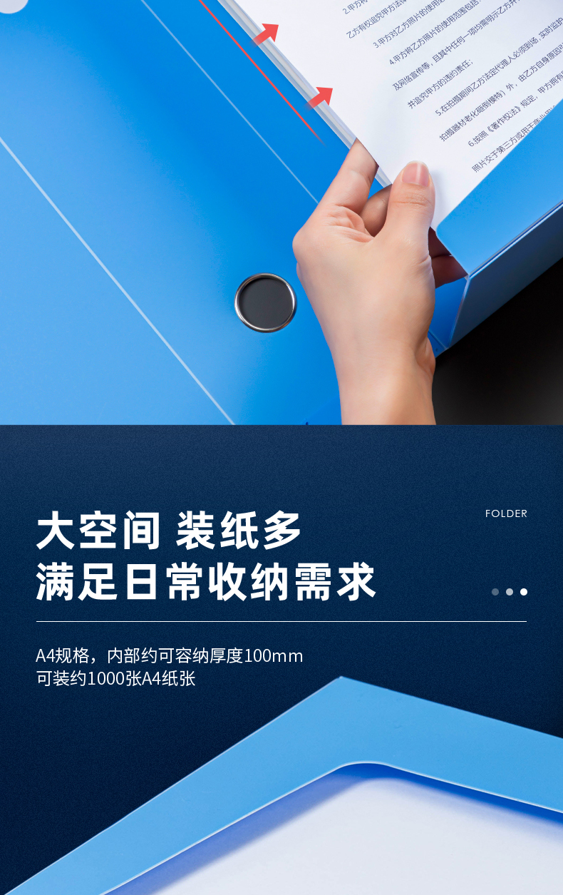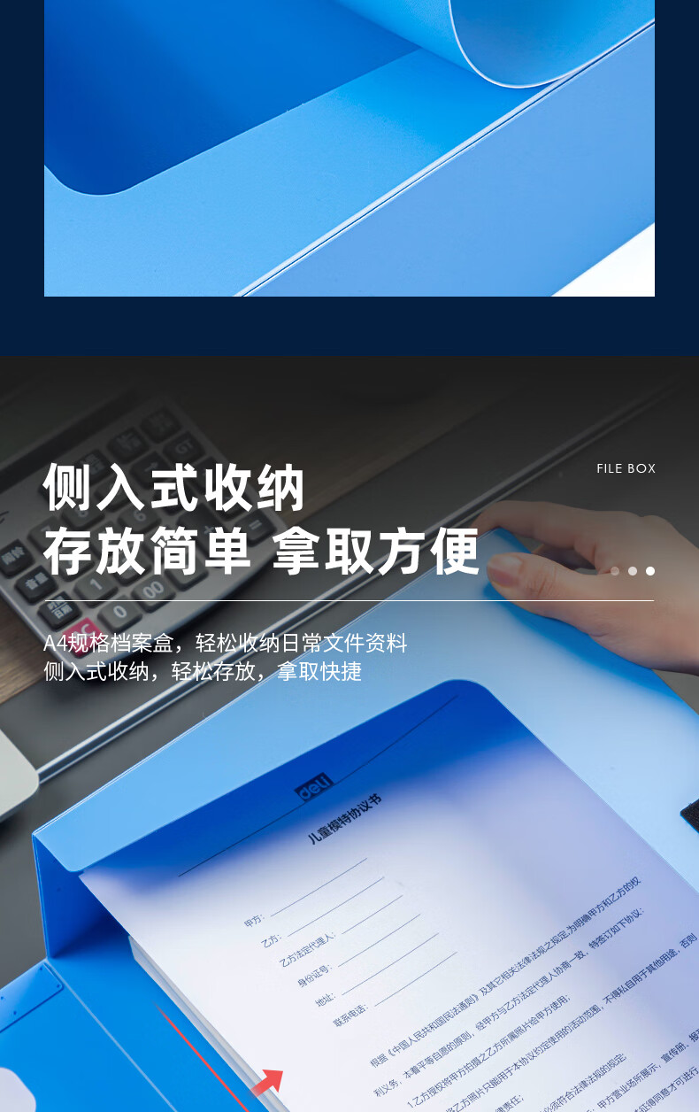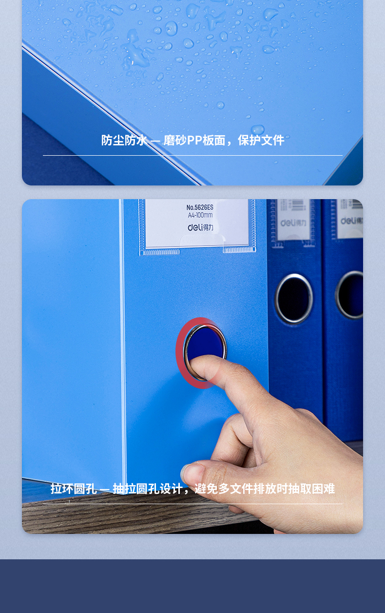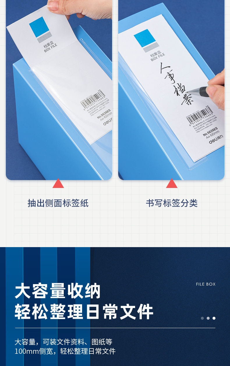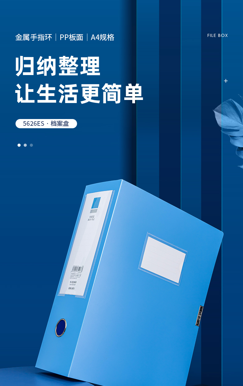 得力(deliA4粘扣档案盒塑料文件盒 文件资料收纳盒 蓝色5626ES 单位:个 水蓝色