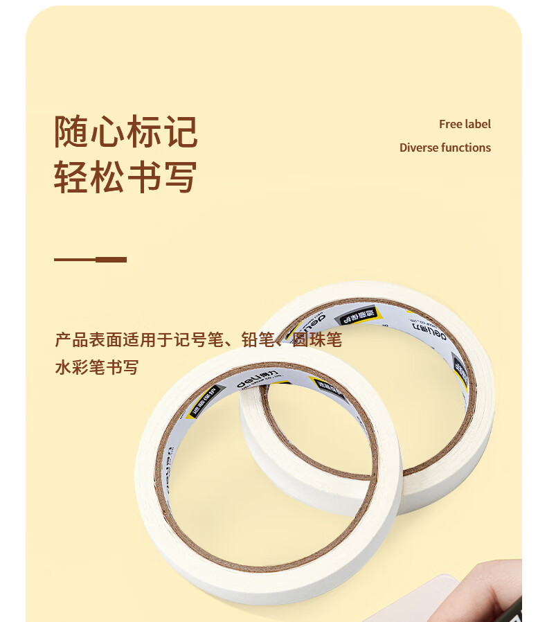 得力(deli)美纹纸胶带15mm*20y*145um(18.3m/卷)10卷装 30669单位:组 白色