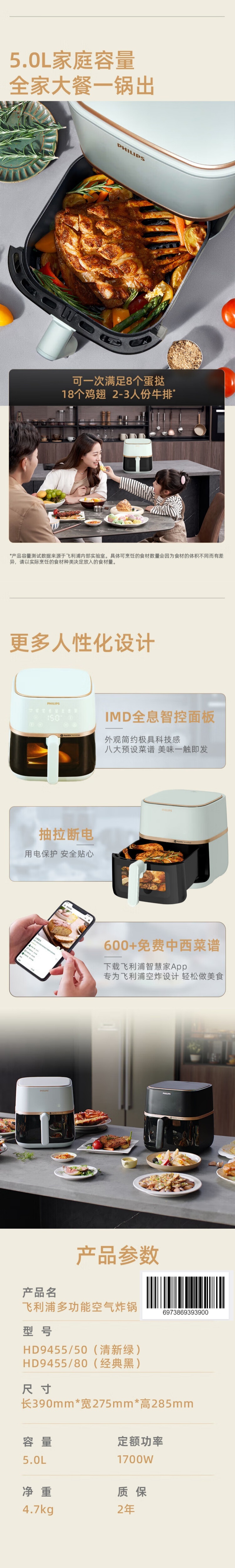 飞利浦可视空气炸锅5LHD9455/50(单位:台) 清新绿