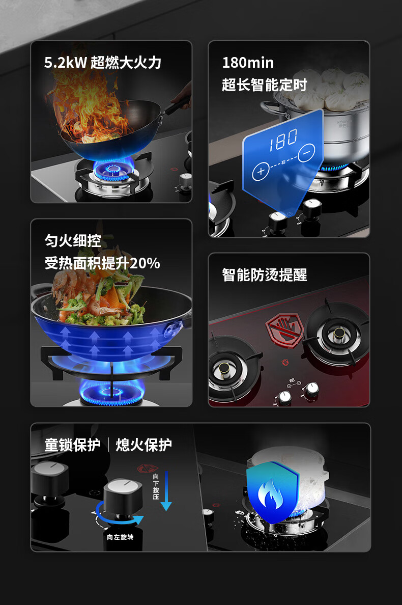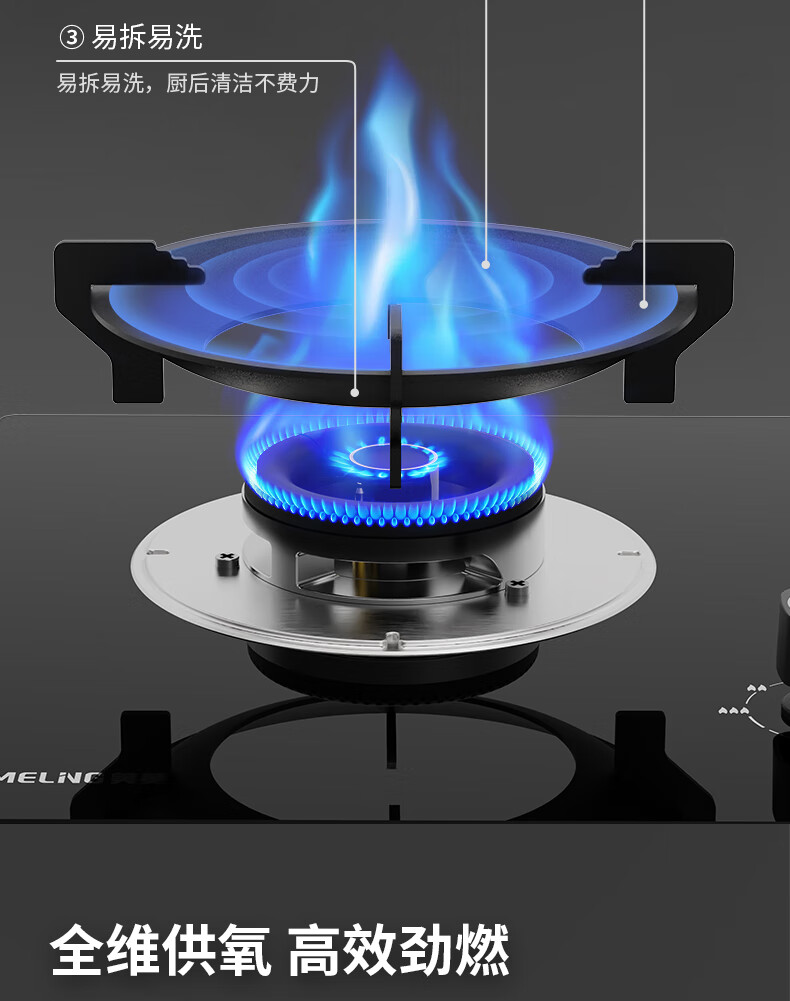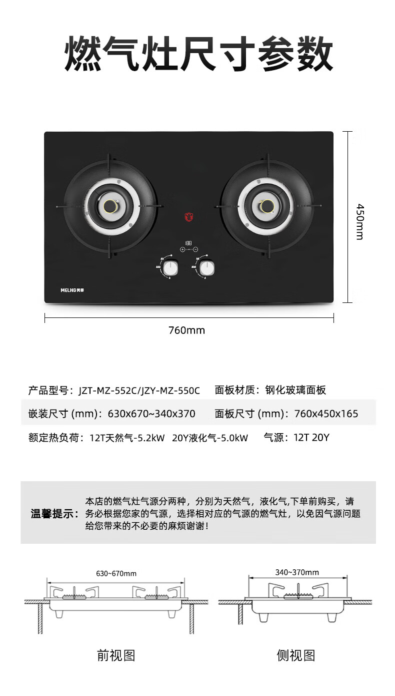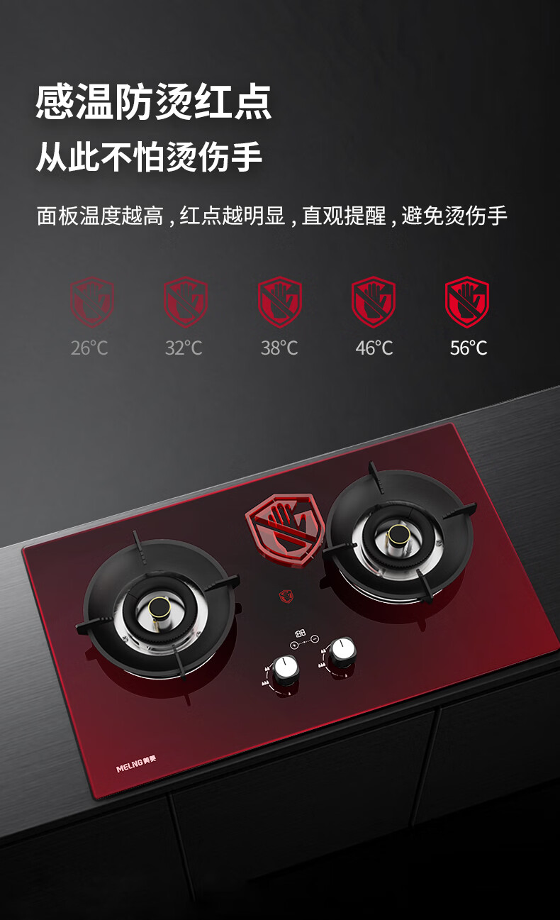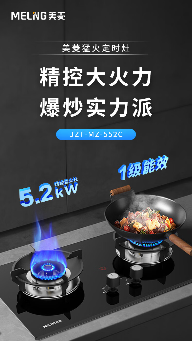 美菱(MELING)5.0KW 眼台嵌两用 钢化玻璃家用瞬时点火灶具 JZY-MZ-550C液化 台 黑色