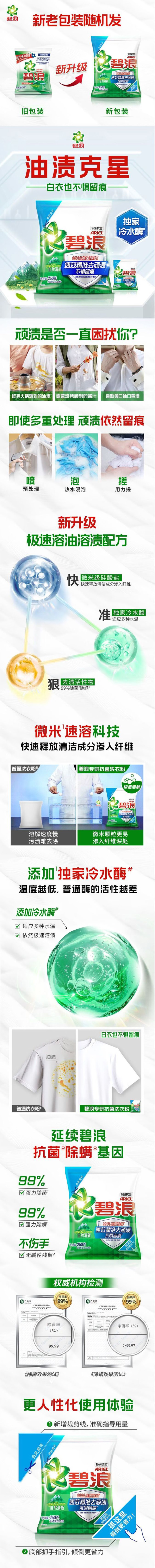碧浪(Ariel)洁净更除菌洗衣粉自然清新250克*4(单位:袋)
