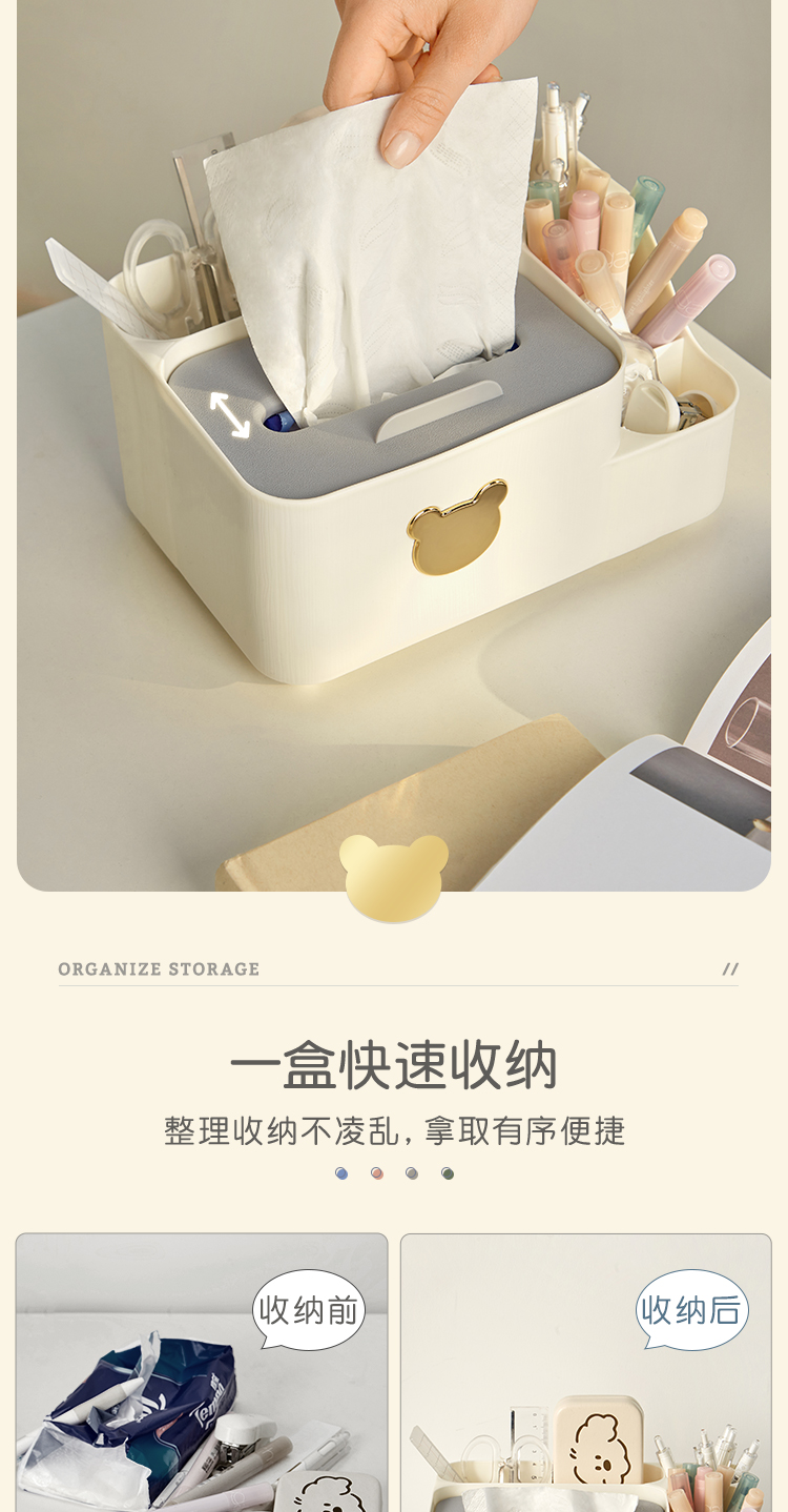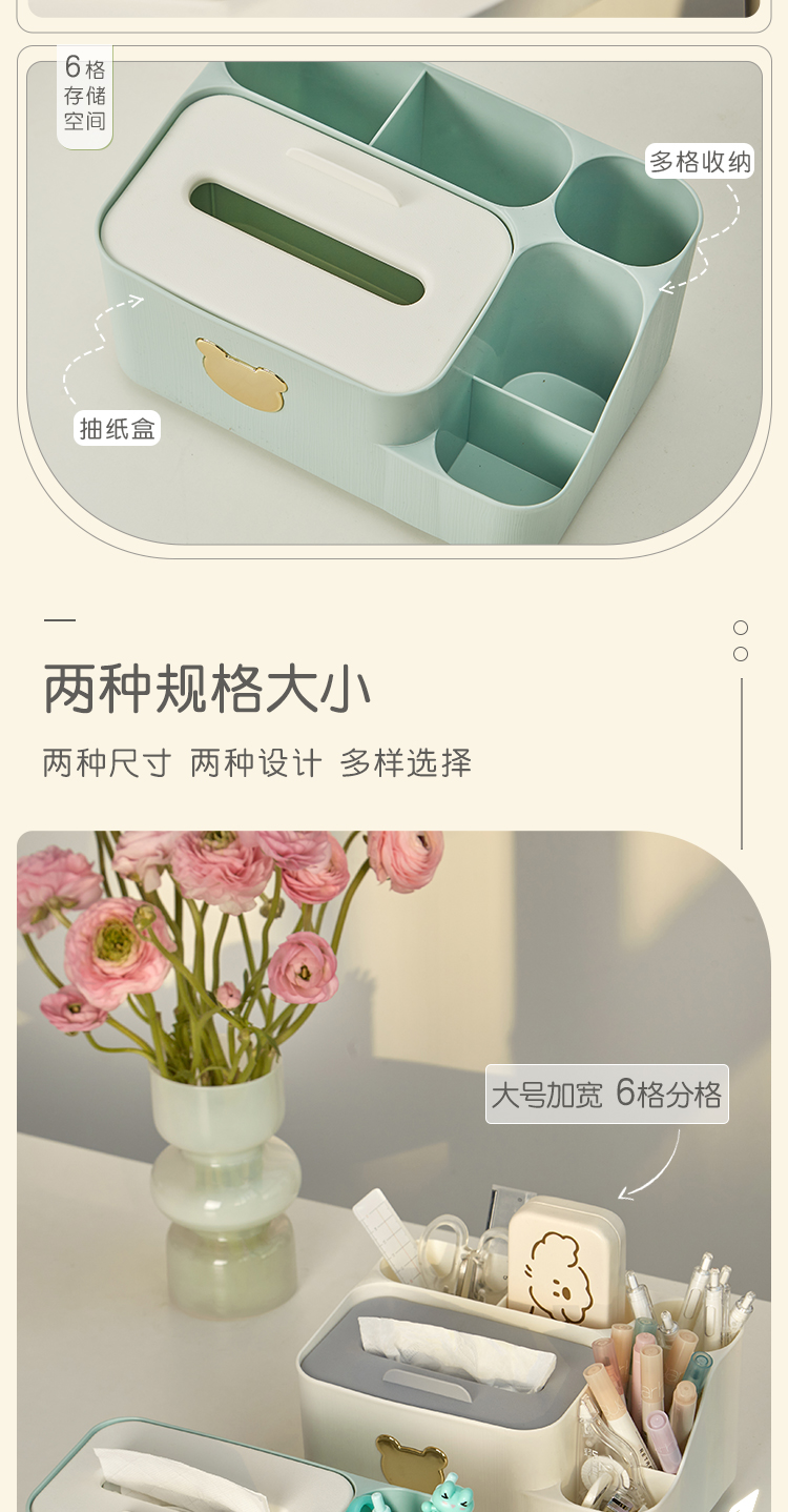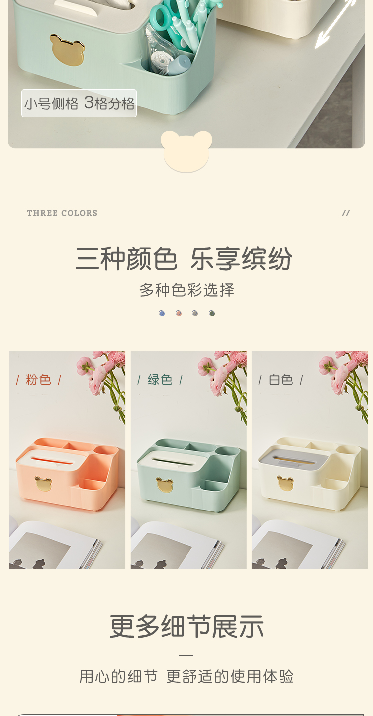 三年二班 小熊笔筒大容量收纳盒学生轻奢简约笔桶创意文具办公室桌面纸巾收纳摆件 /个 绿色大号