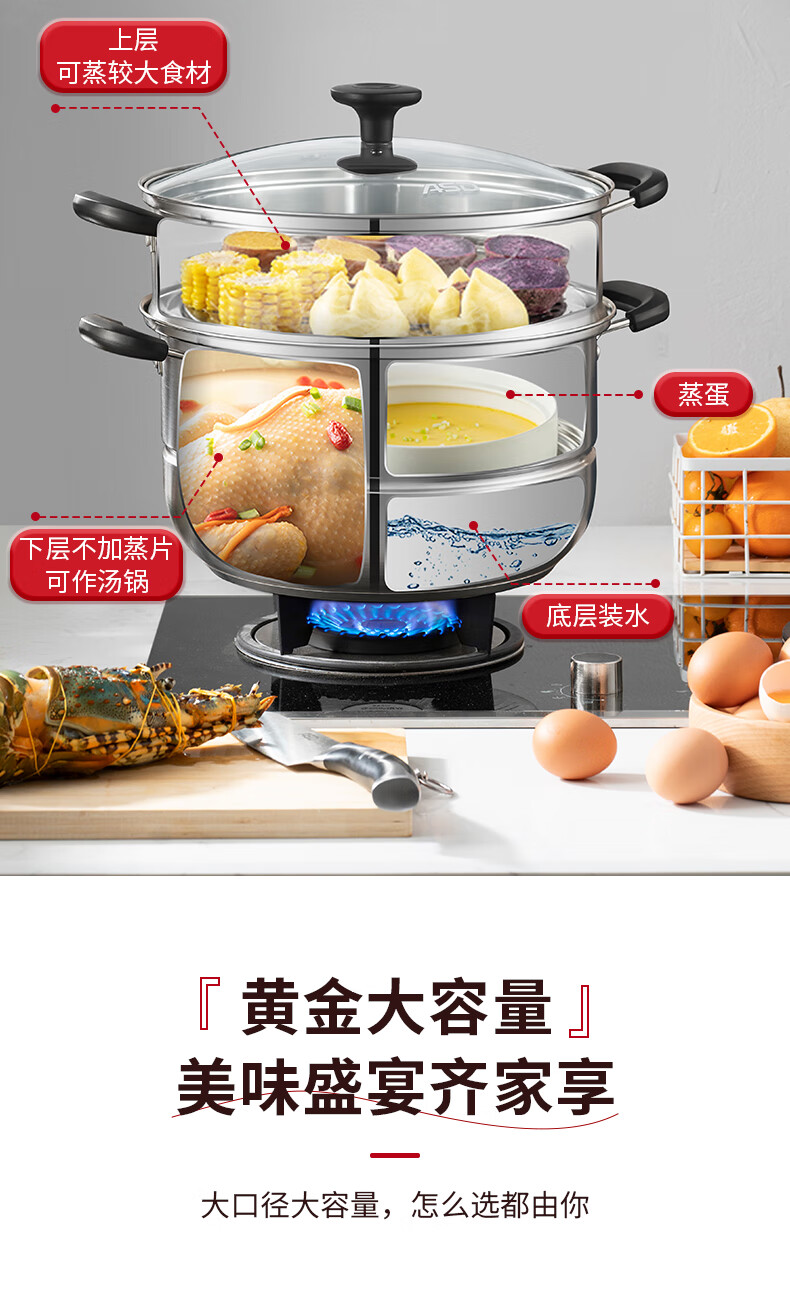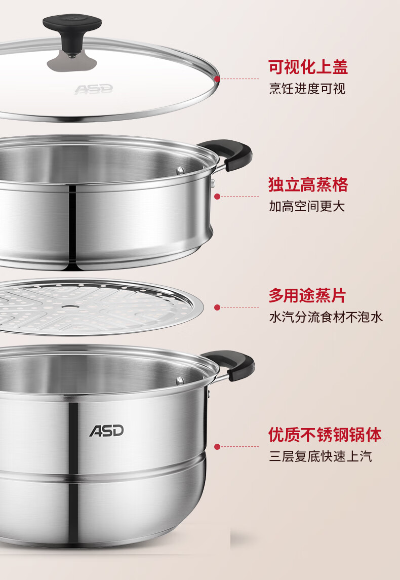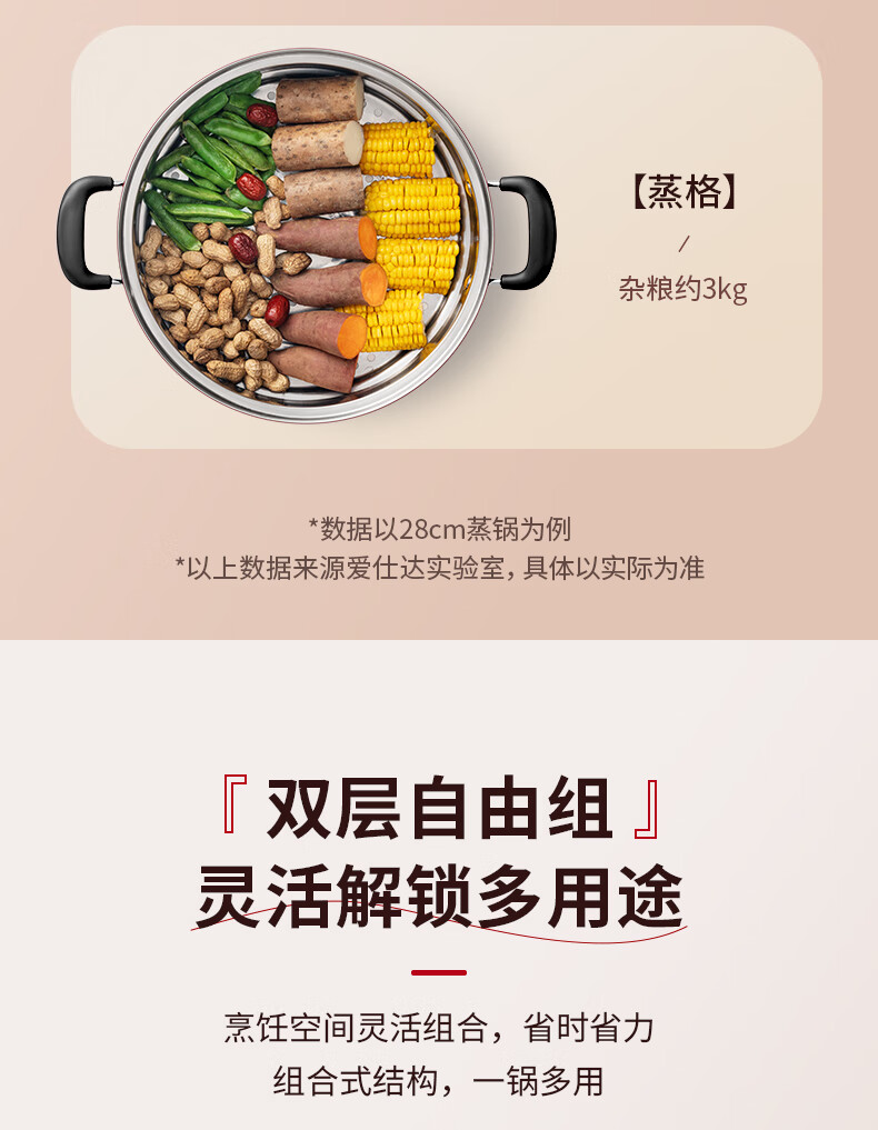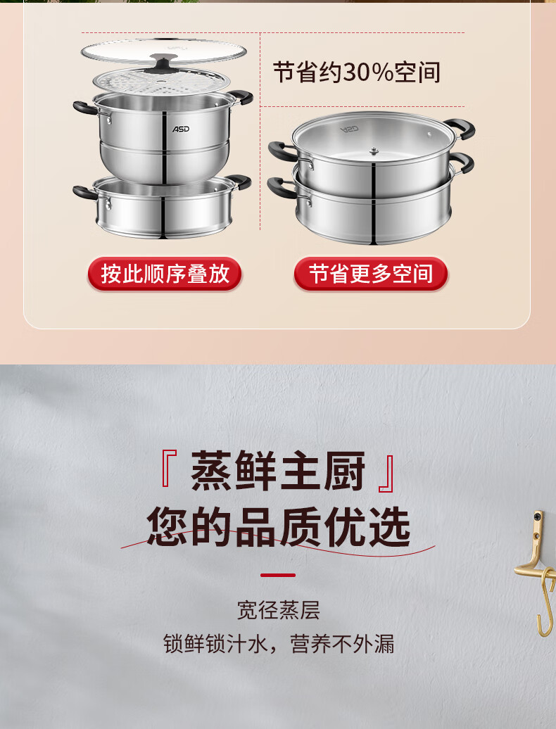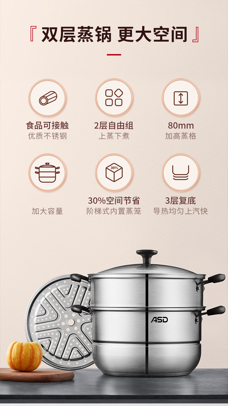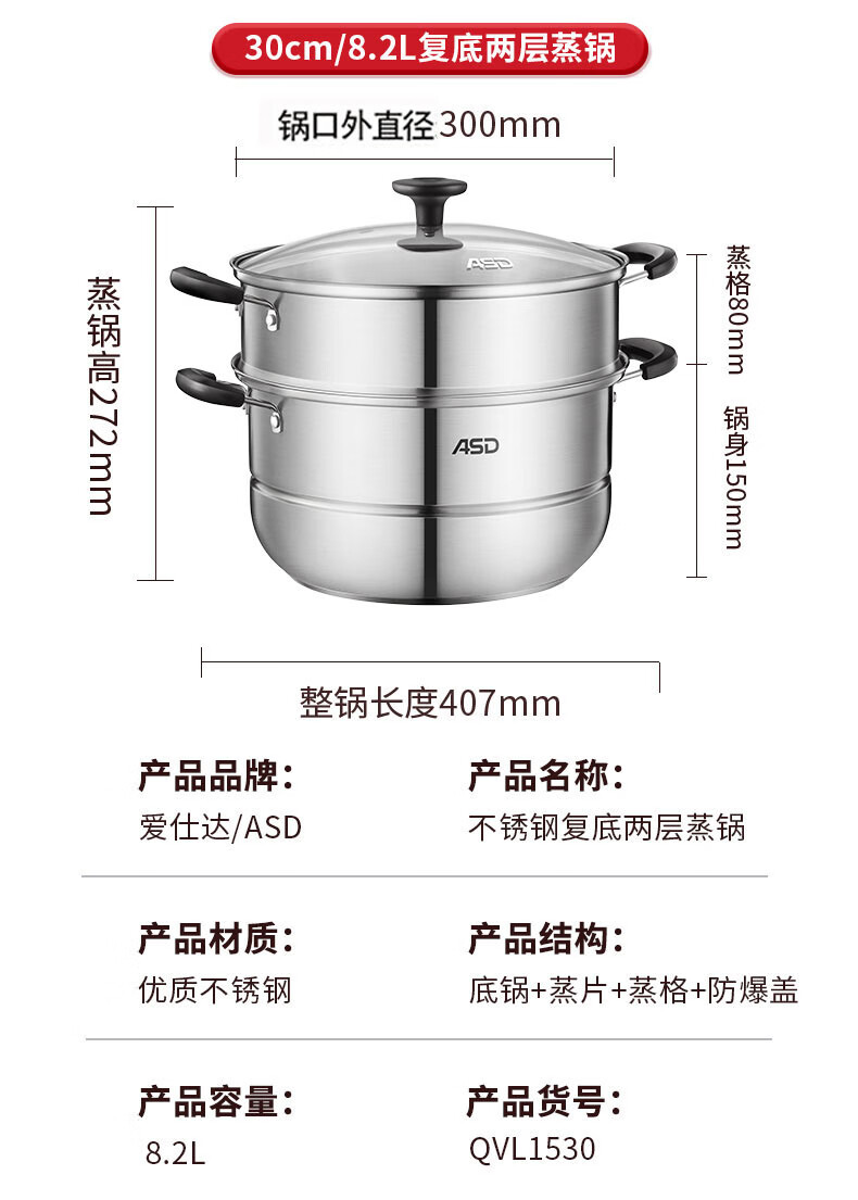 爱仕达不锈钢双层蒸锅QVL1530 单位:个 不锈钢色