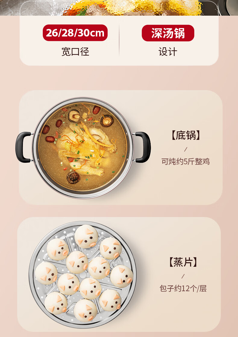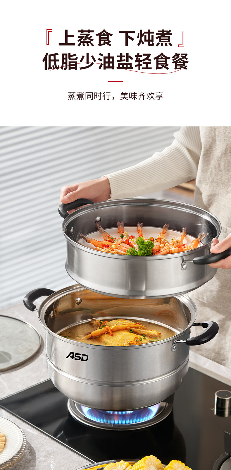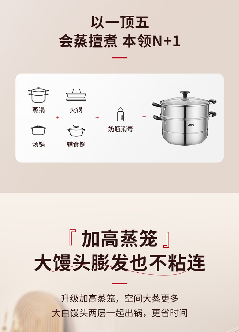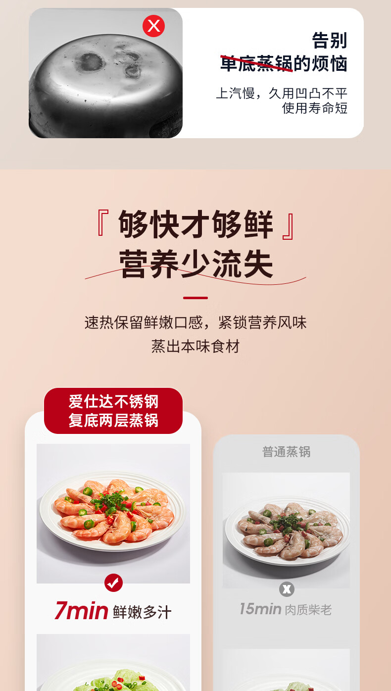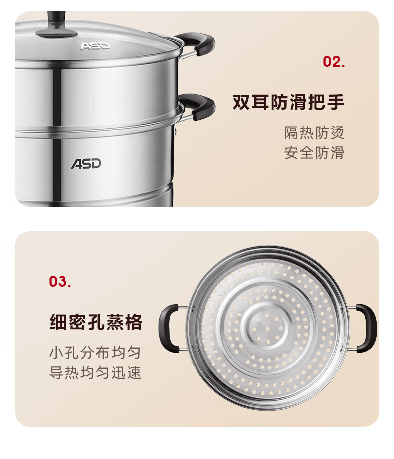 爱仕达不锈钢双层蒸锅QVL1530 单位:个 不锈钢色