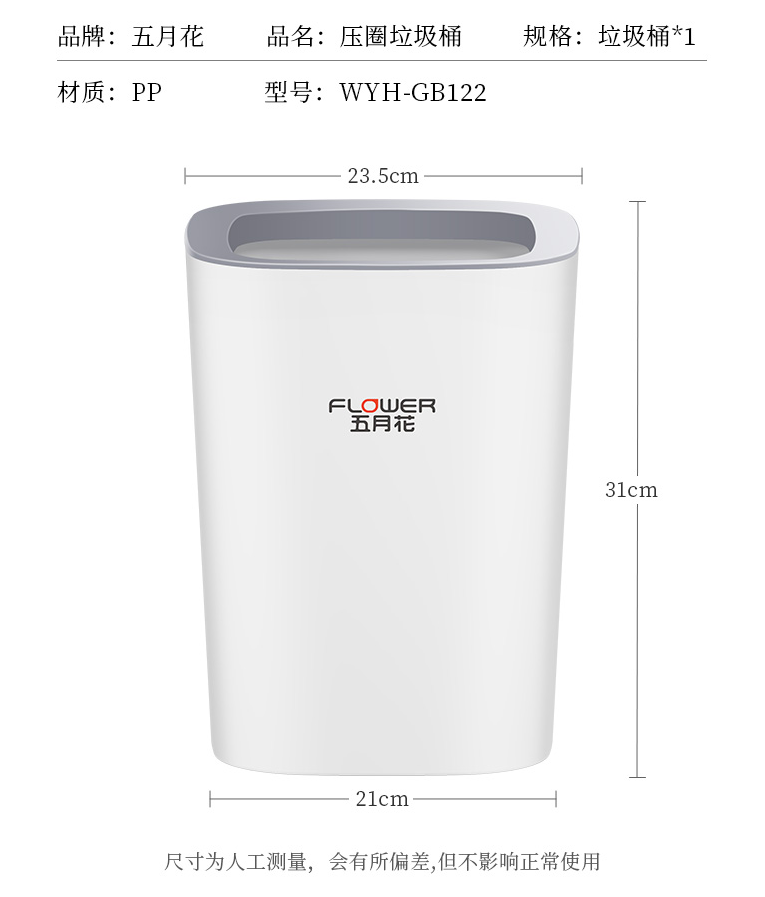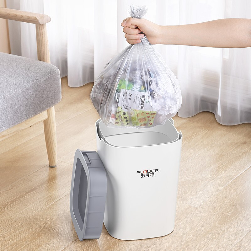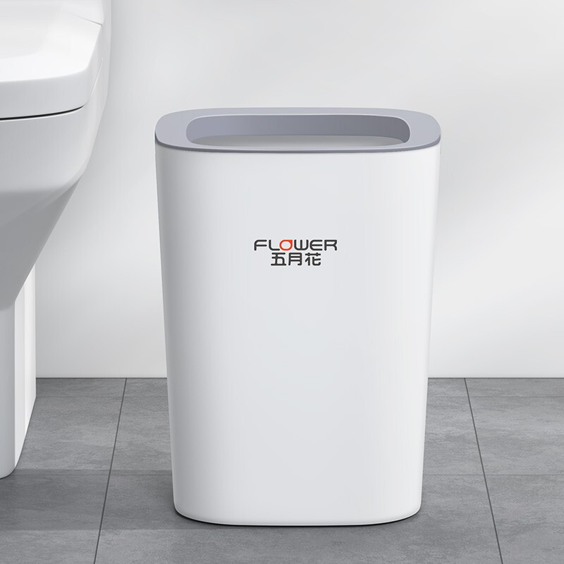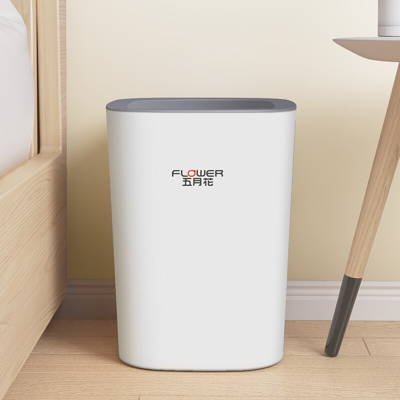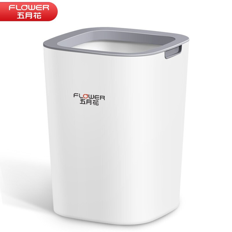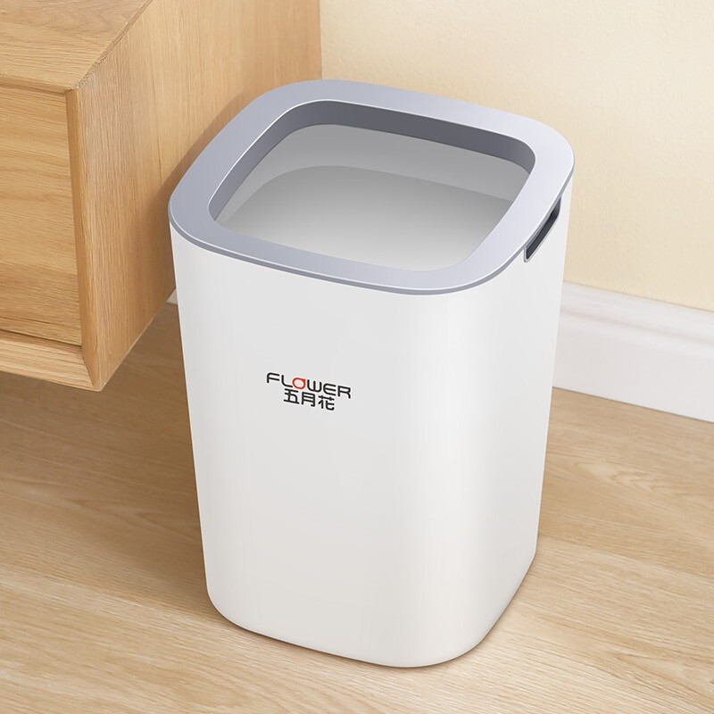 五月花白色方形加深压圈垃圾桶 卧室厨房客厅办公室大容量纸篓WYH-GB122(单位:个) 白色