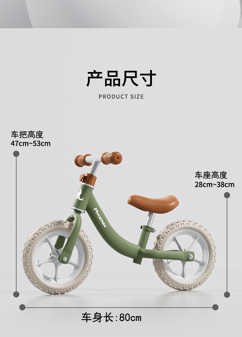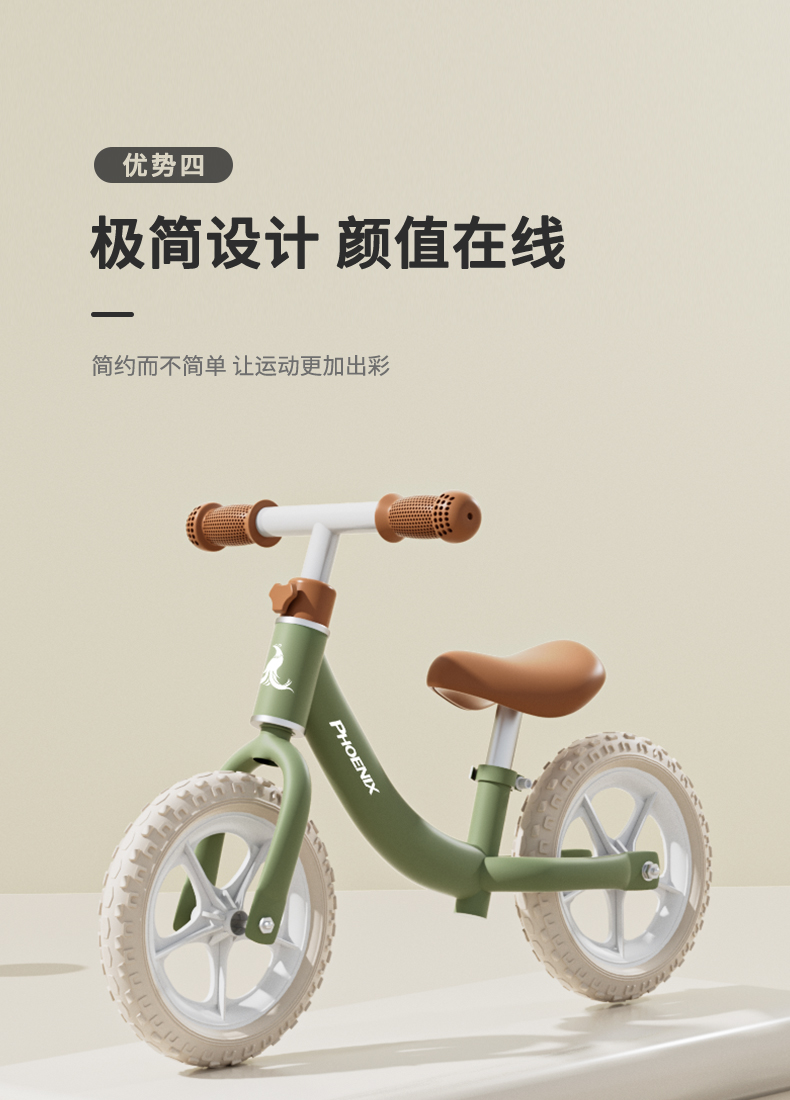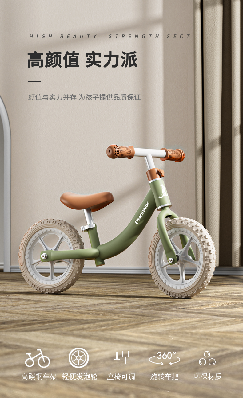 凤凰儿童平衡车滑步车T12/辆 绿色