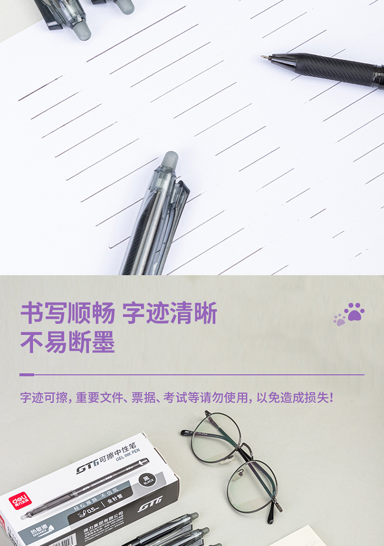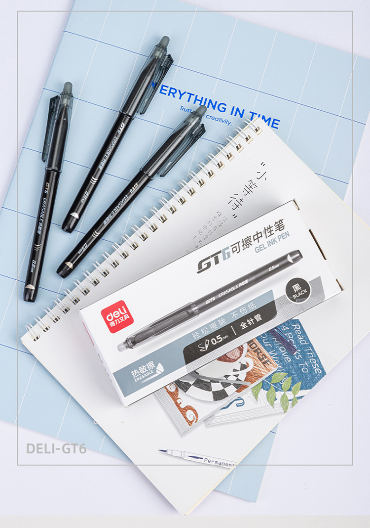 得力(deli)0.5mm全针管可擦中性笔 签字笔水笔学生文具 黑色 12支/盒 GT6 单位:盒 黑色