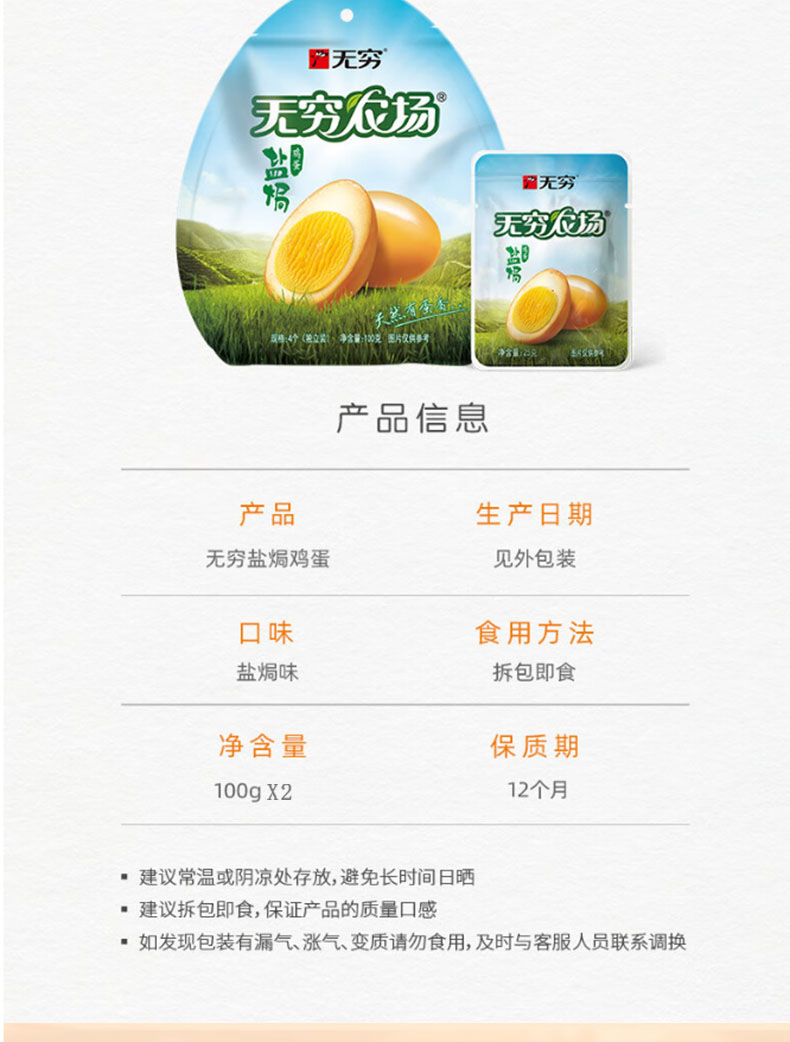 无穷 卤蛋休闲零食盐焗鸡蛋100g*2袋装