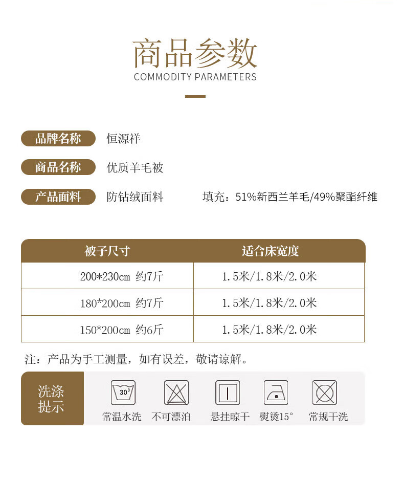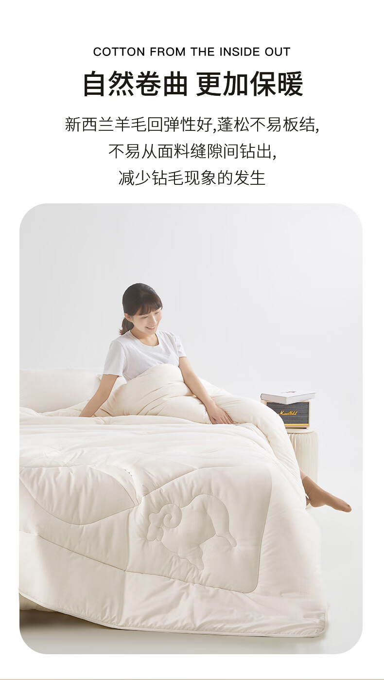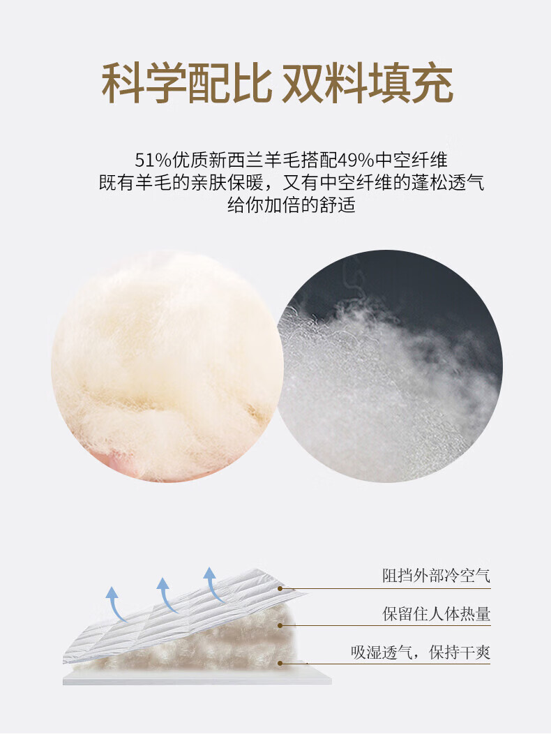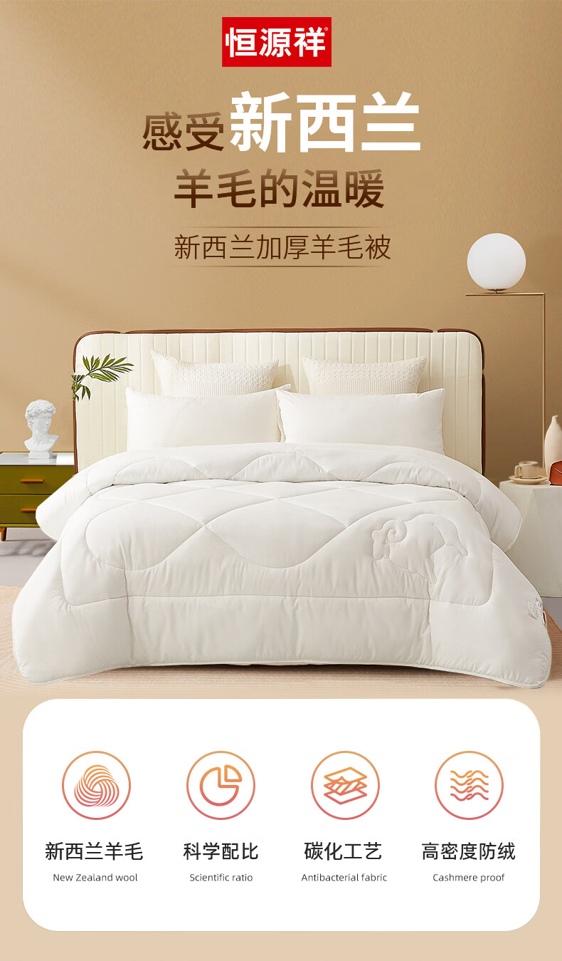 恒源祥新西兰抗菌羊毛被芯6斤单人宿舍150*200cm(单位:条)