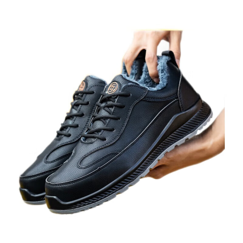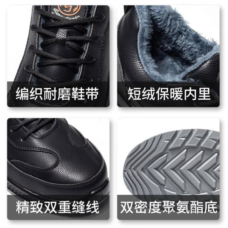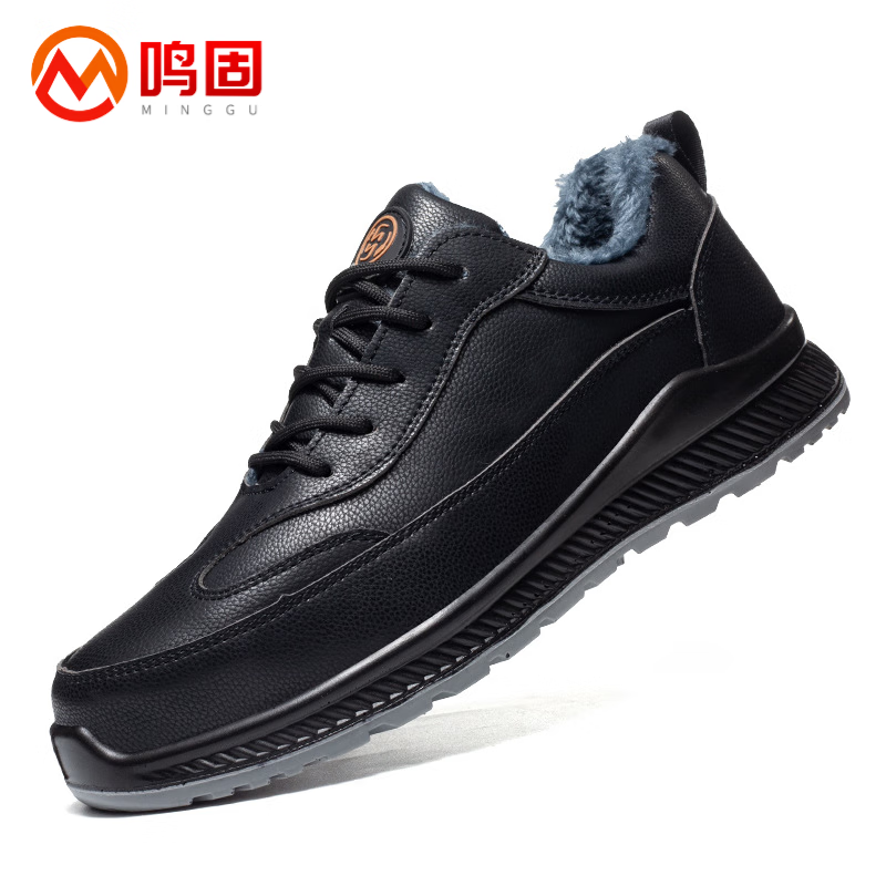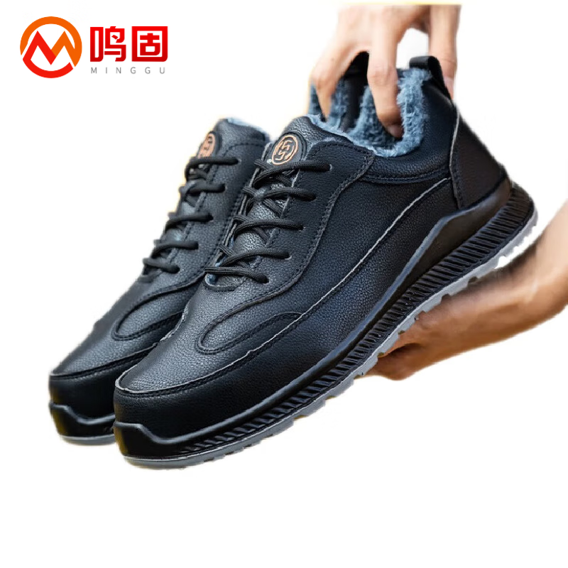 鸣固 绝缘鞋 防砸耐磨牛皮塑钢头工地防护鞋 低帮劳保棉鞋碳黑42 MG-TB-1797(单位:双) 黑色