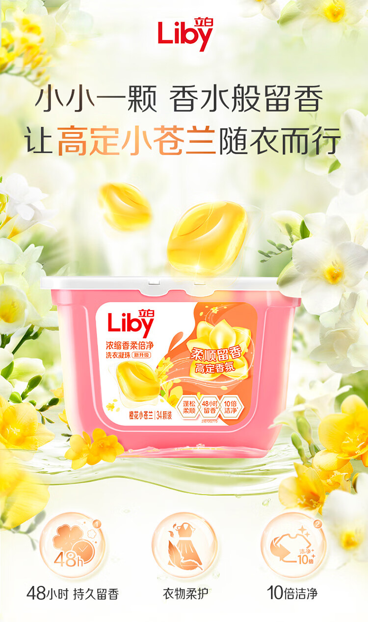 立白 洗衣凝珠 小苍兰香氛 34颗 粉色(单位:盒)