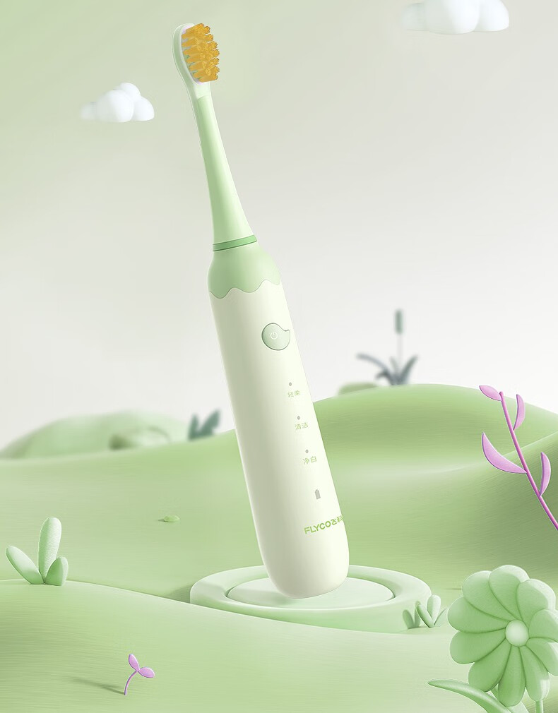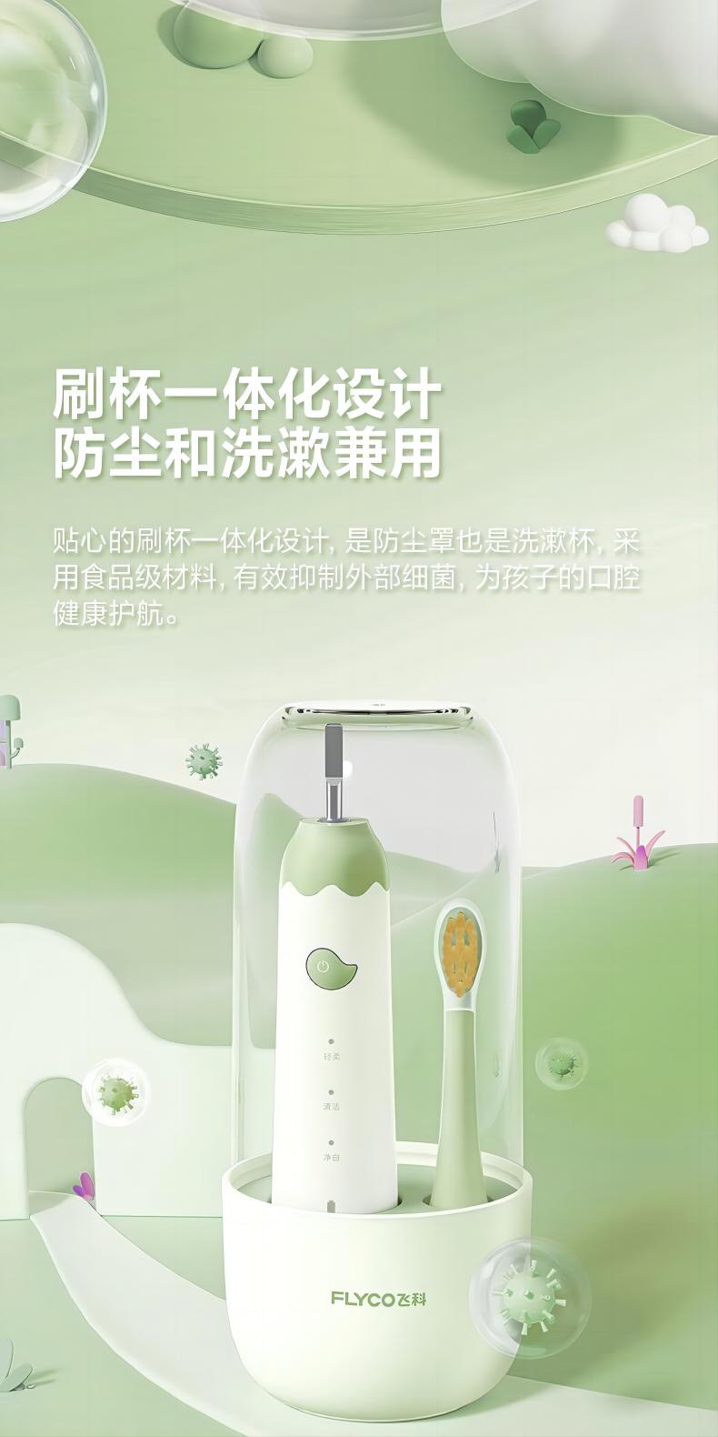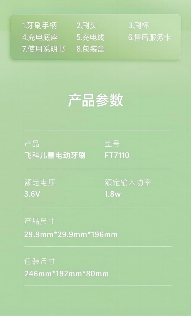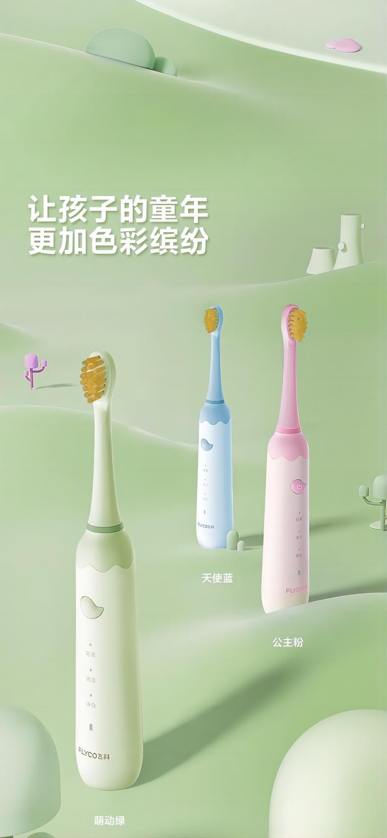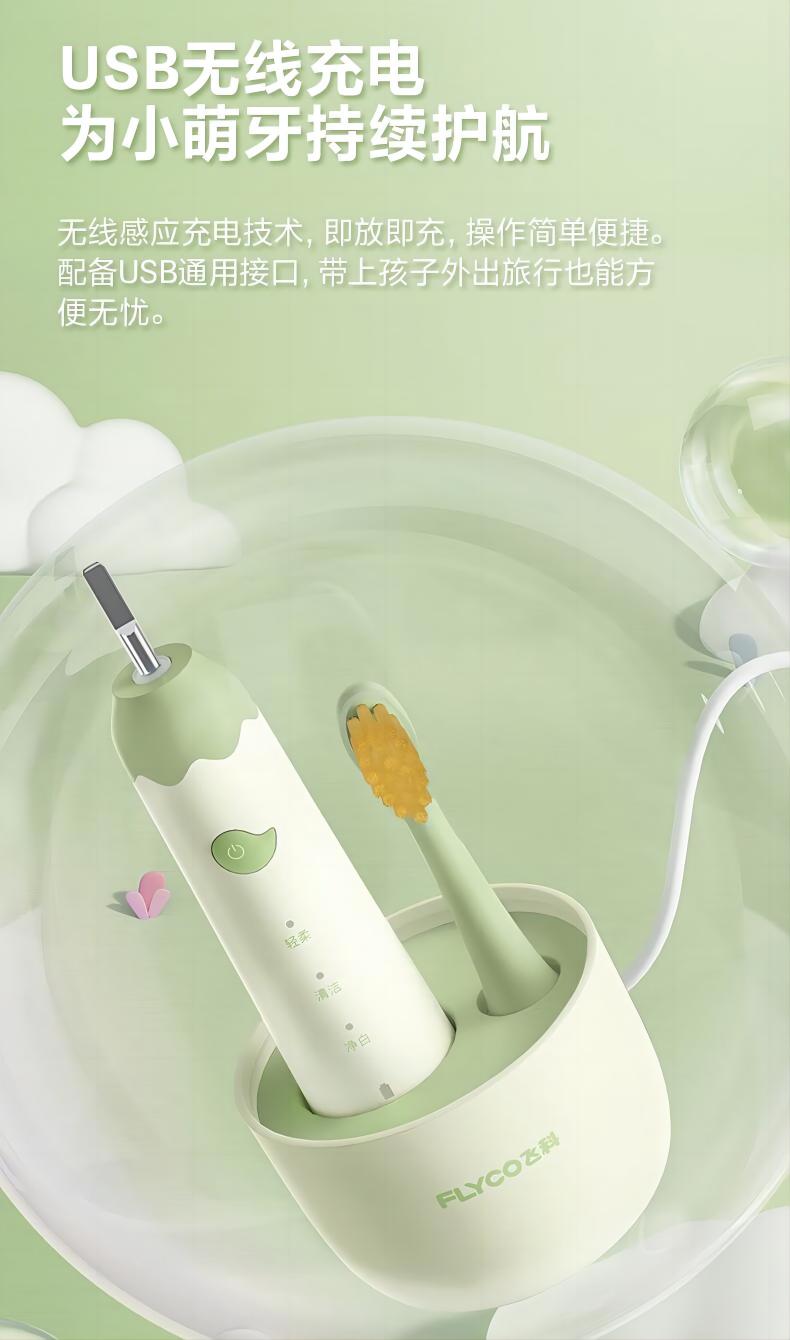 飞科(FLYCO)FT7110儿童电动牙刷家用软毛全自动声波振动【标配2支刷头】+刷杯 单位:套 公主粉