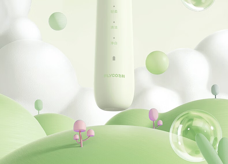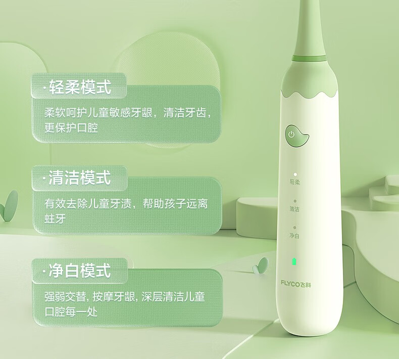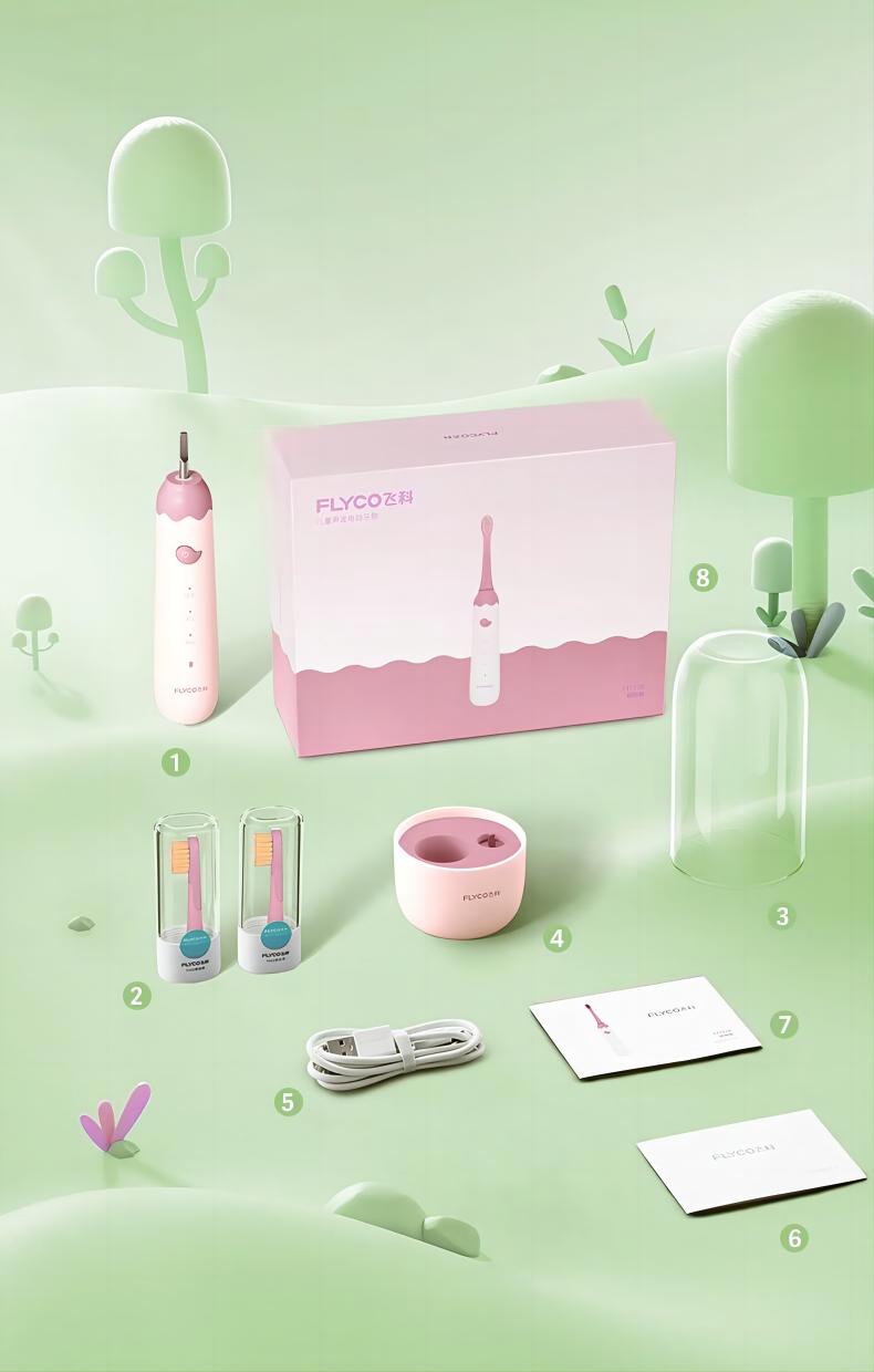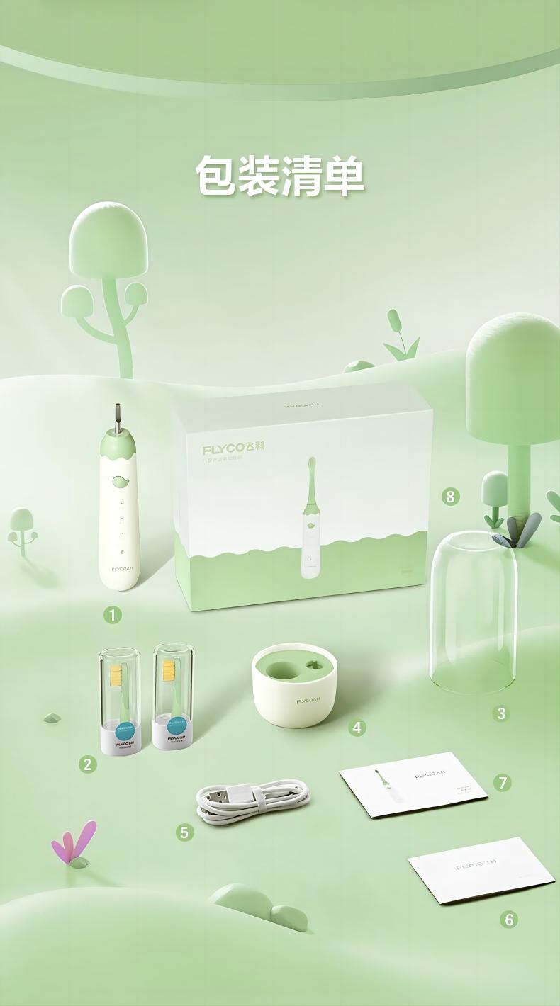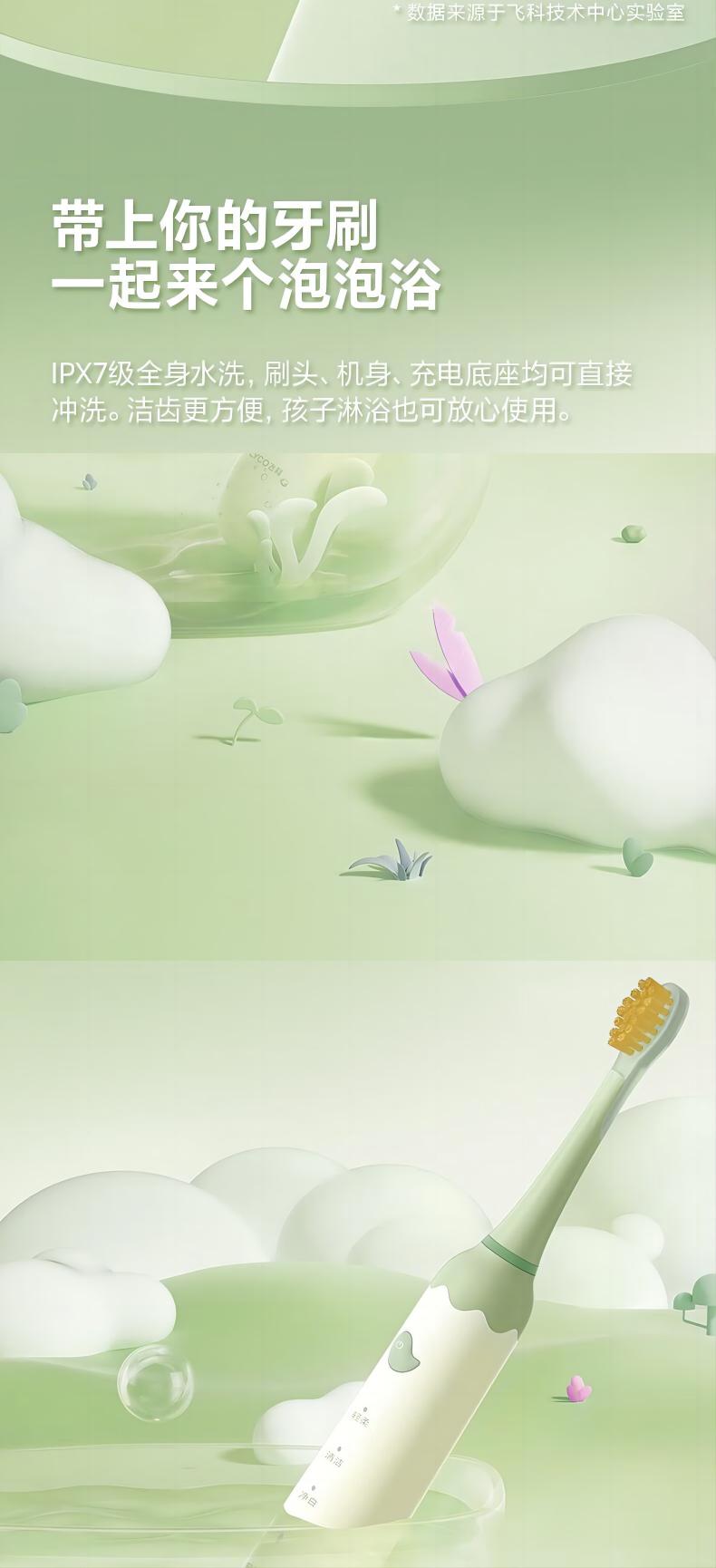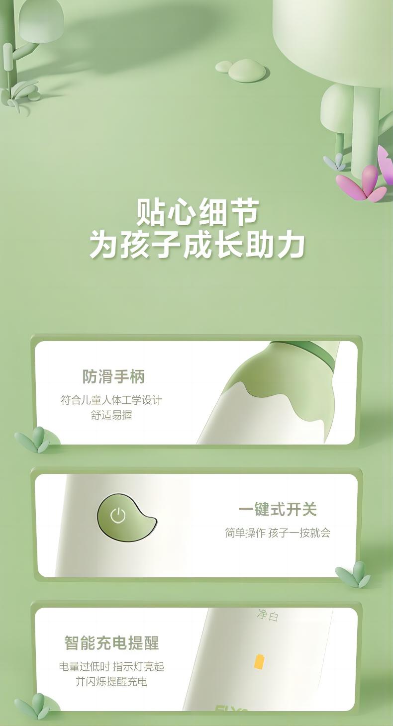 飞科(FLYCO)FT7110儿童电动牙刷家用软毛全自动声波振动【标配2支刷头】+刷杯 单位:套 公主粉