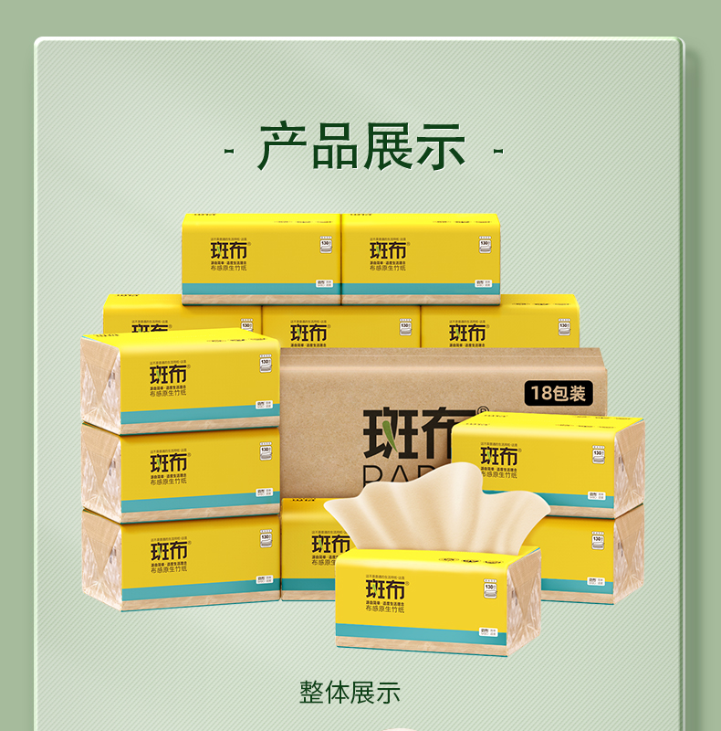 斑布(BABO)BASE系列抽纸 原生竹浆本色 3层130抽18包DBCR130E18 (单位:箱) 本色