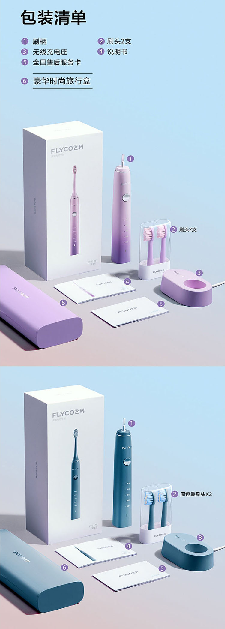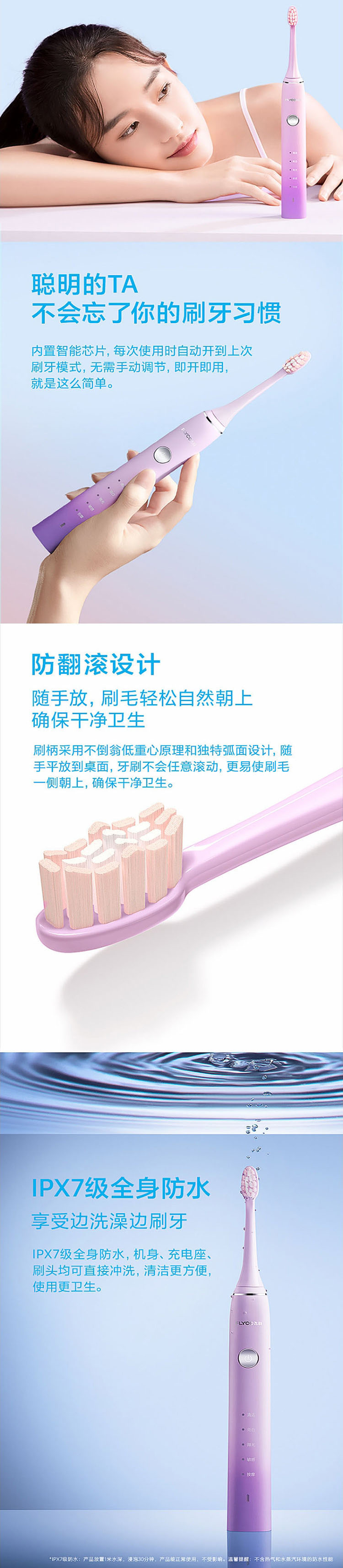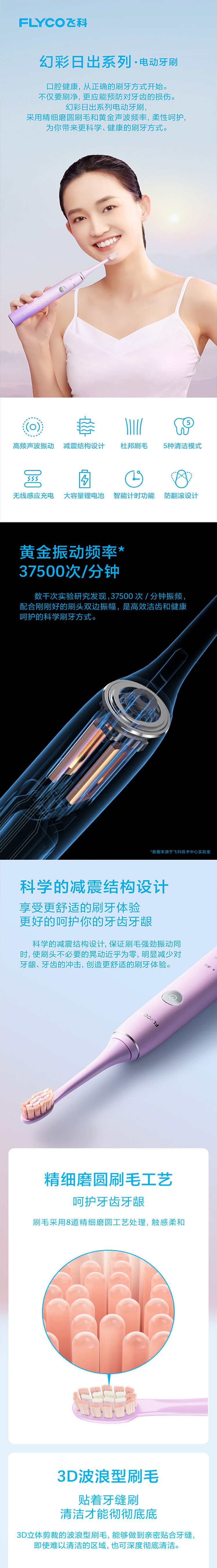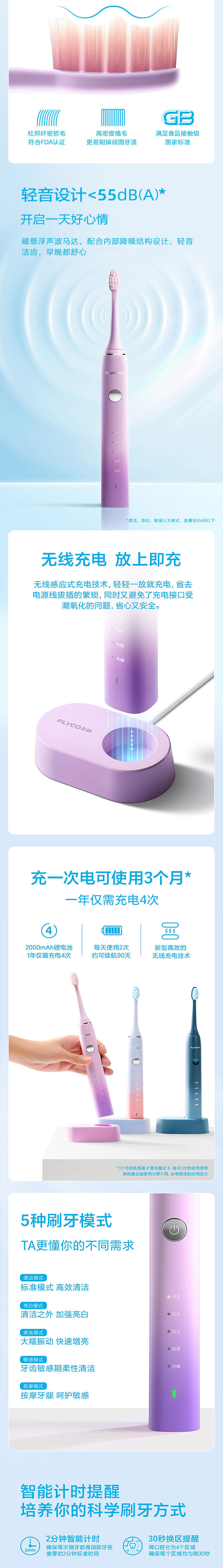 飞科 充电防水电动牙刷 FT7105 单位:个 蓝色
