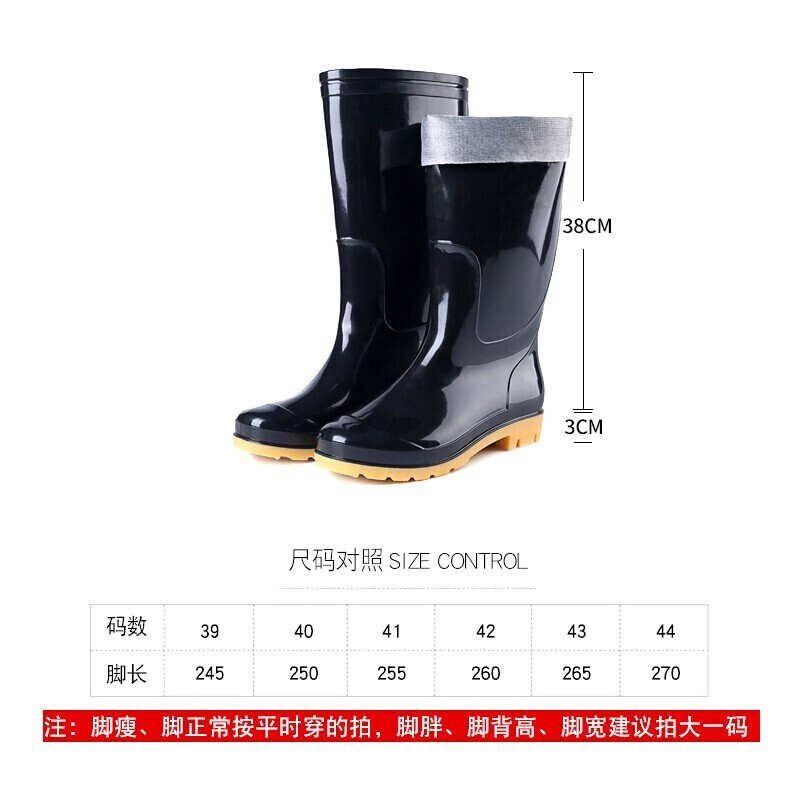 鸣固 高筒雨靴 户外劳保男女水鞋胶鞋防滑耐磨雨鞋钓鱼靴洗车鞋子工地水靴43码双 黑色