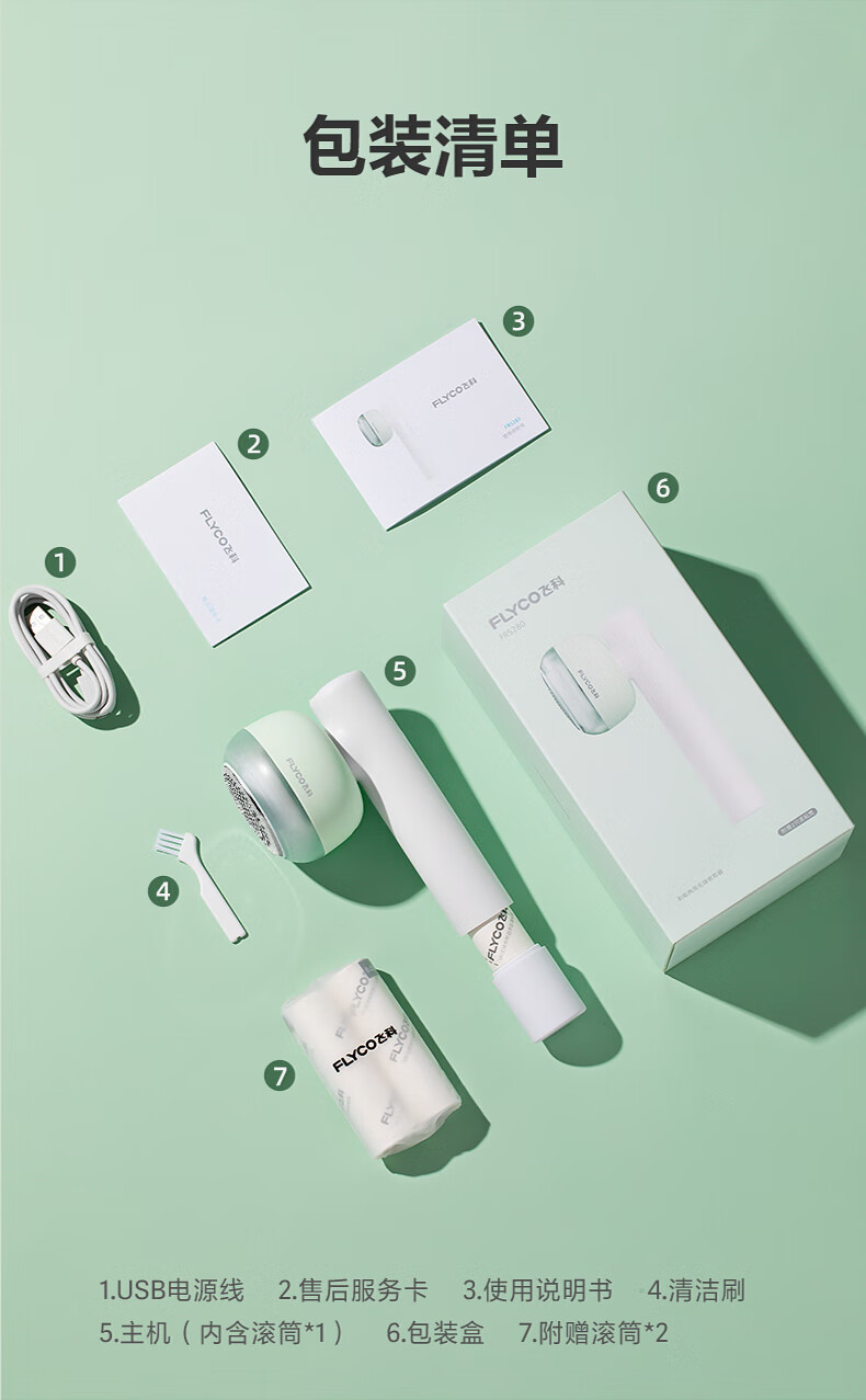 飞科(FLYCO) FR5280 185mm*87.5mm*75mm 毛球修剪器 绿色(单位:个)