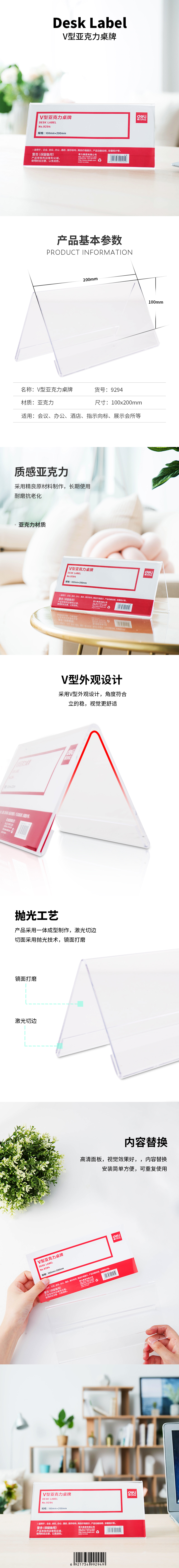 得力(deli) 9294 V型200*100mm 质感亚克力V型 透明色(单位:个)