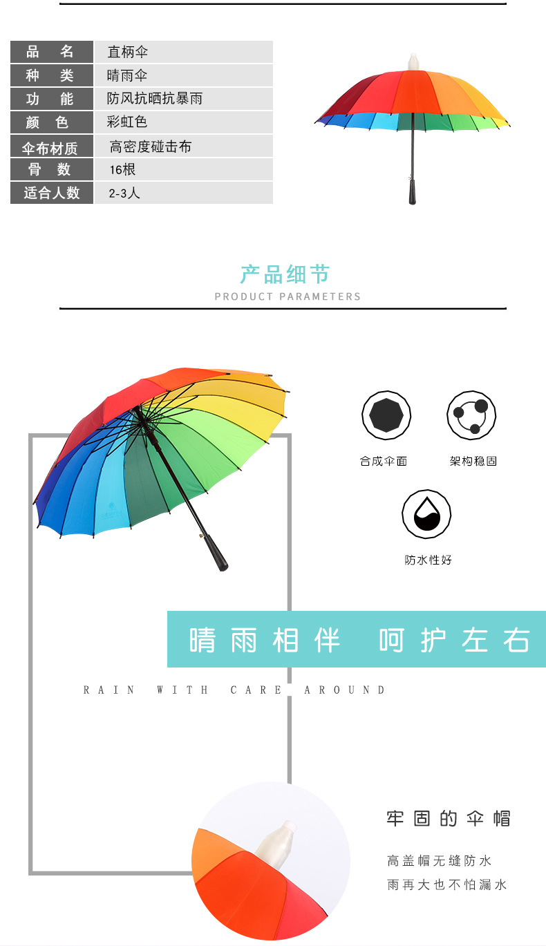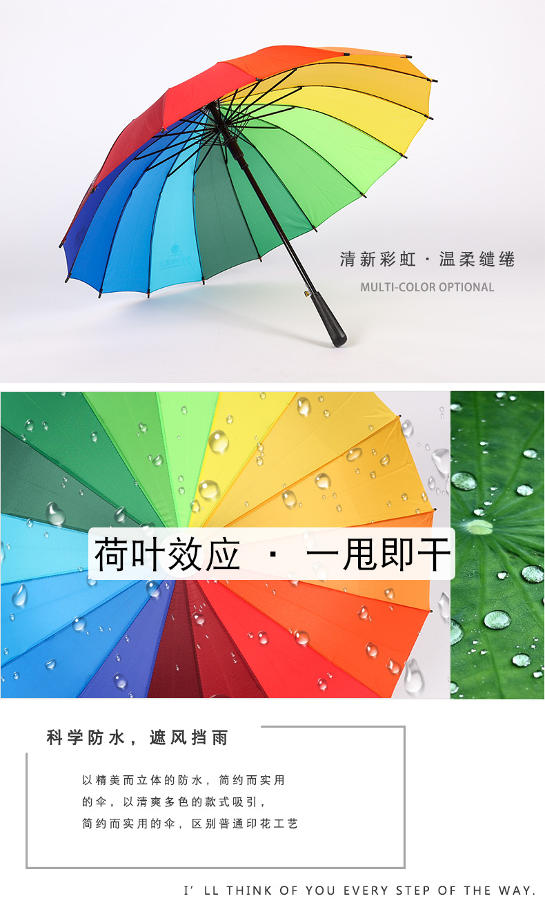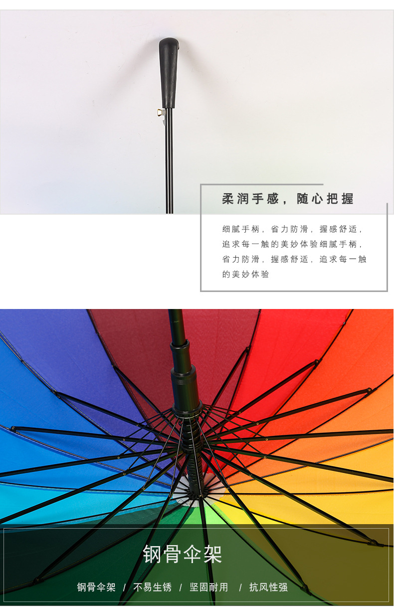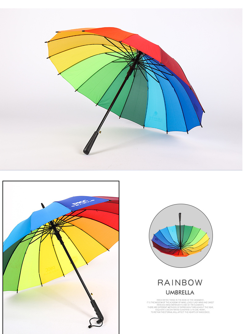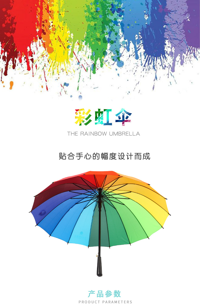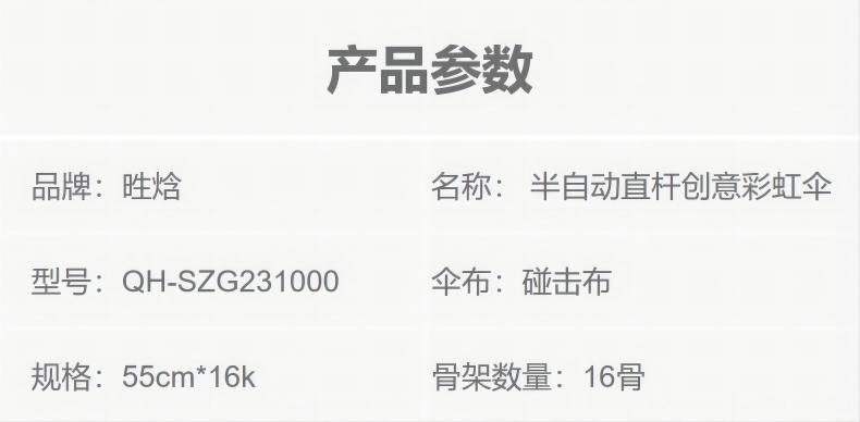甠焓 QH-2312 16骨 半自动直杆创意彩虹伞 混色(单位:把)