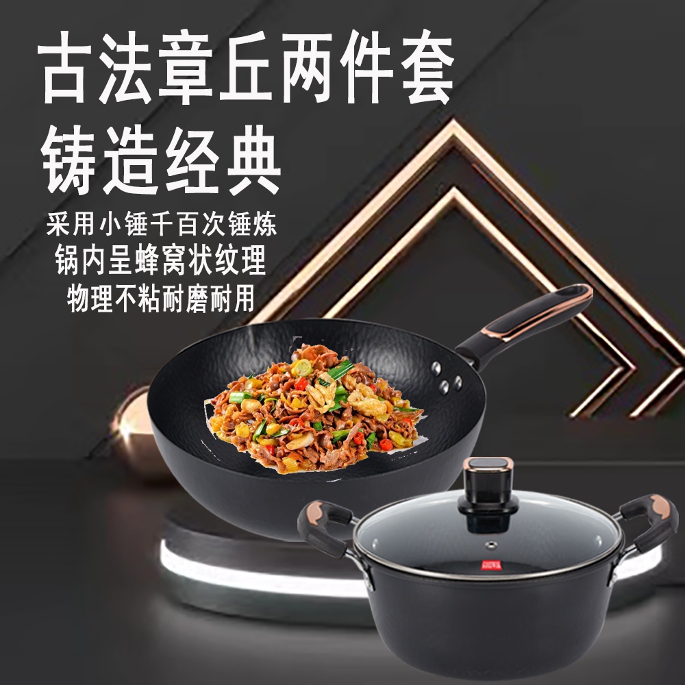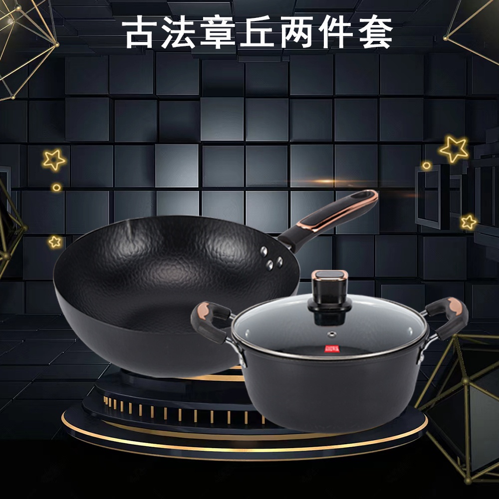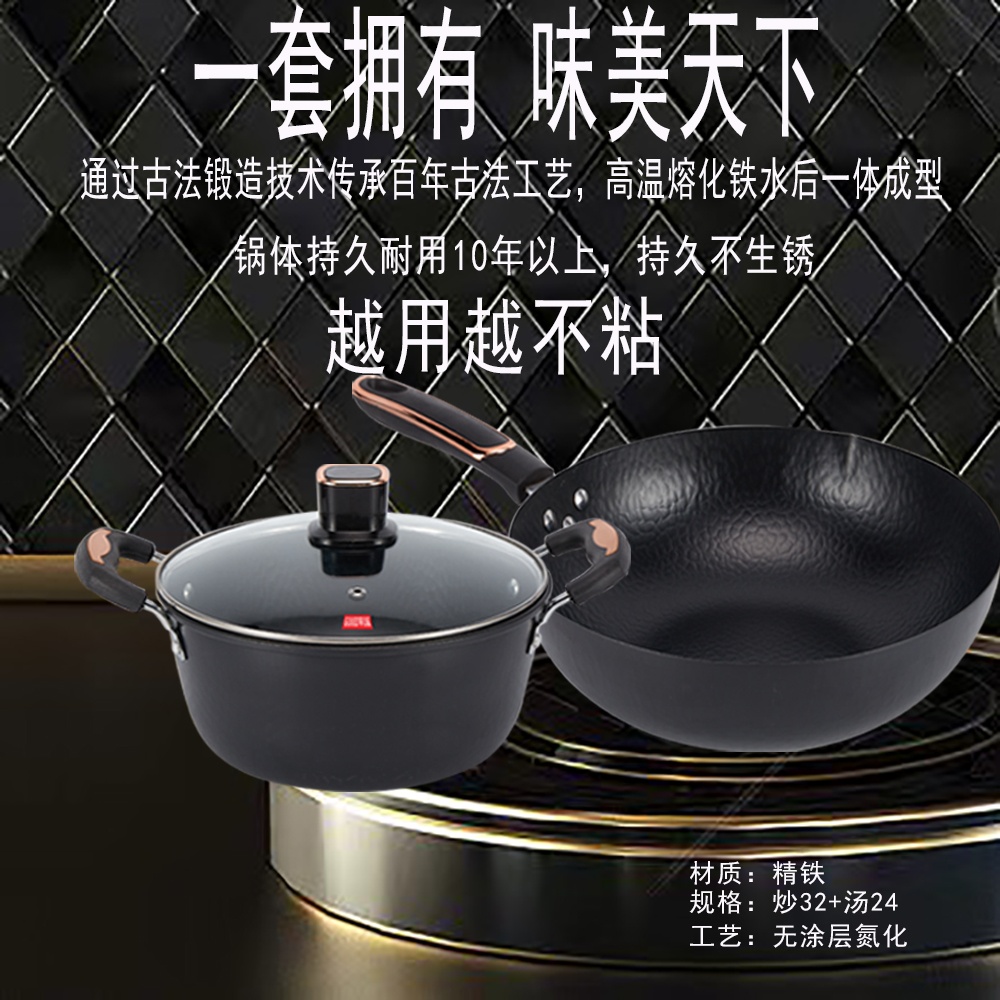 百斯克 古法章丘炒锅汤锅二件套 炒锅32cm、汤锅24cm (单位: 套) 黑色