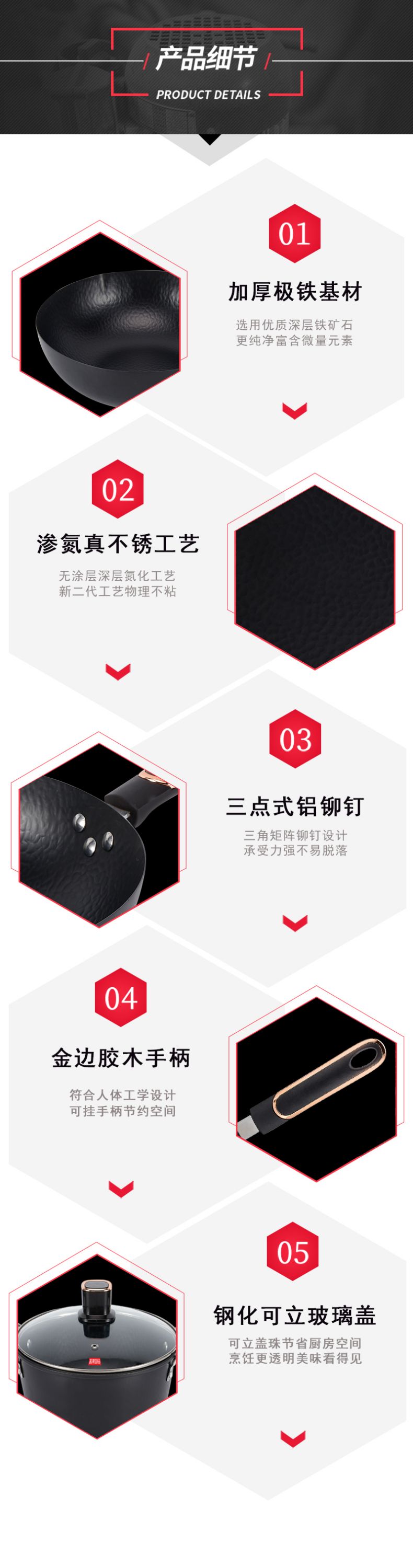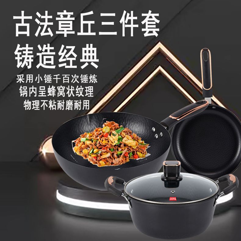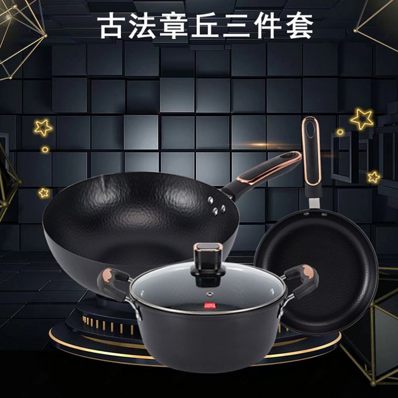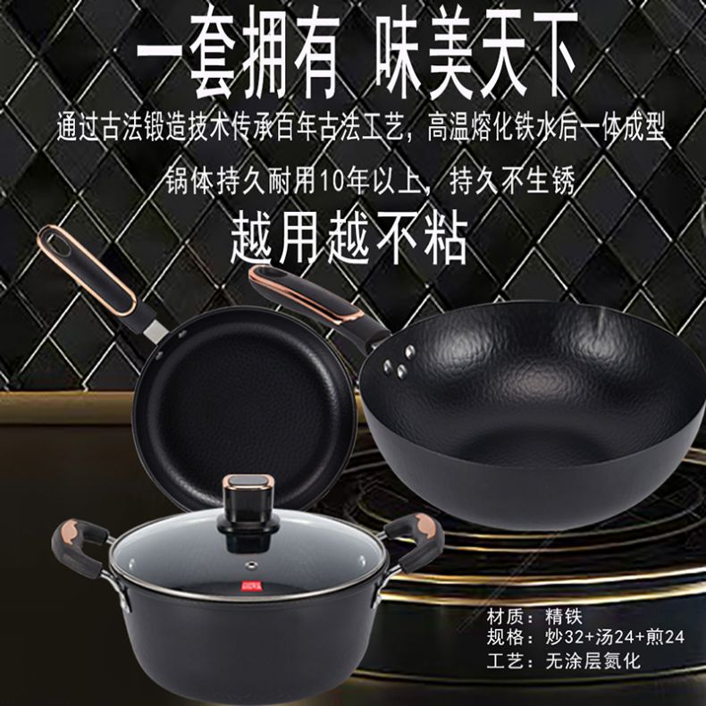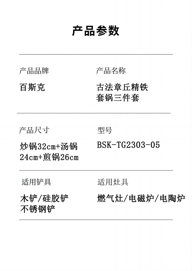 百斯克 古法章丘精铁套锅三件套 BSK-TG2303-05 炒锅32cm+汤锅24cm+煎锅26cm 黑色(单位:套)