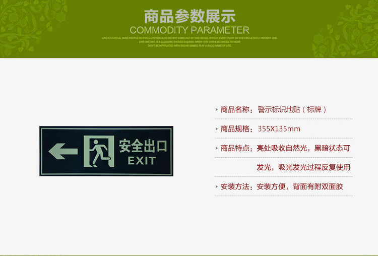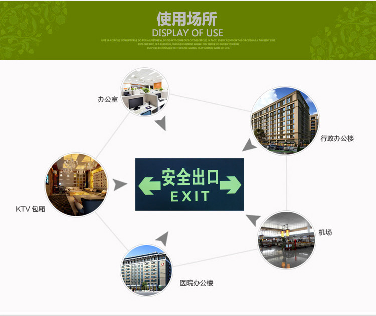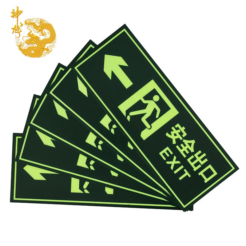 神龙安全出口字五件套警示指示标示牌(套) 柠绿色