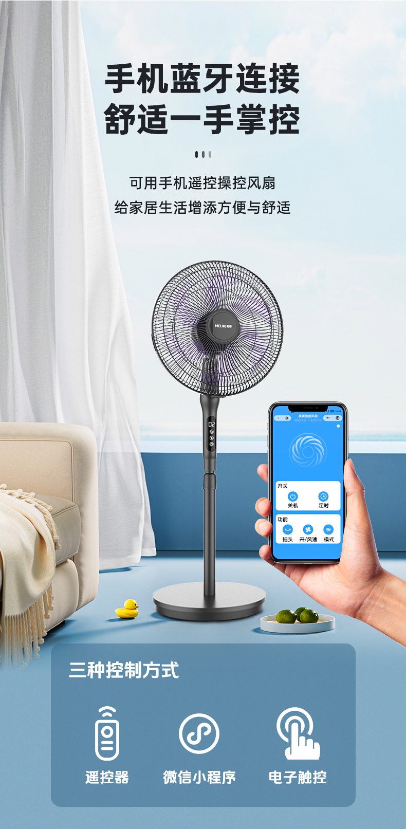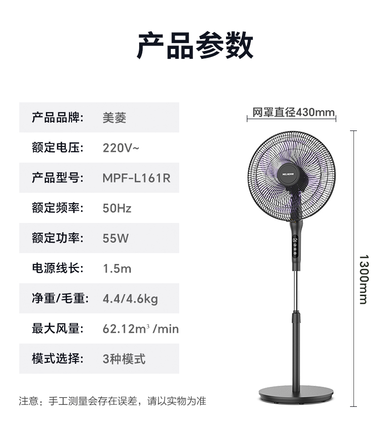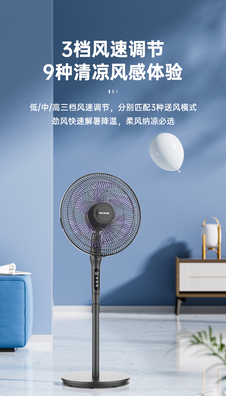 美菱(MELNG)六叶轻音智能立式电风扇 MPF-L161R(单位/台) 黑色