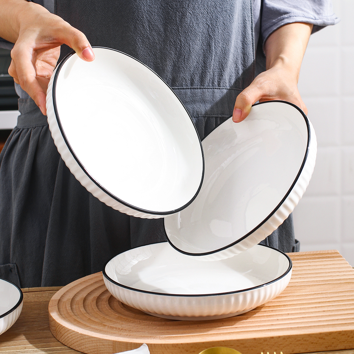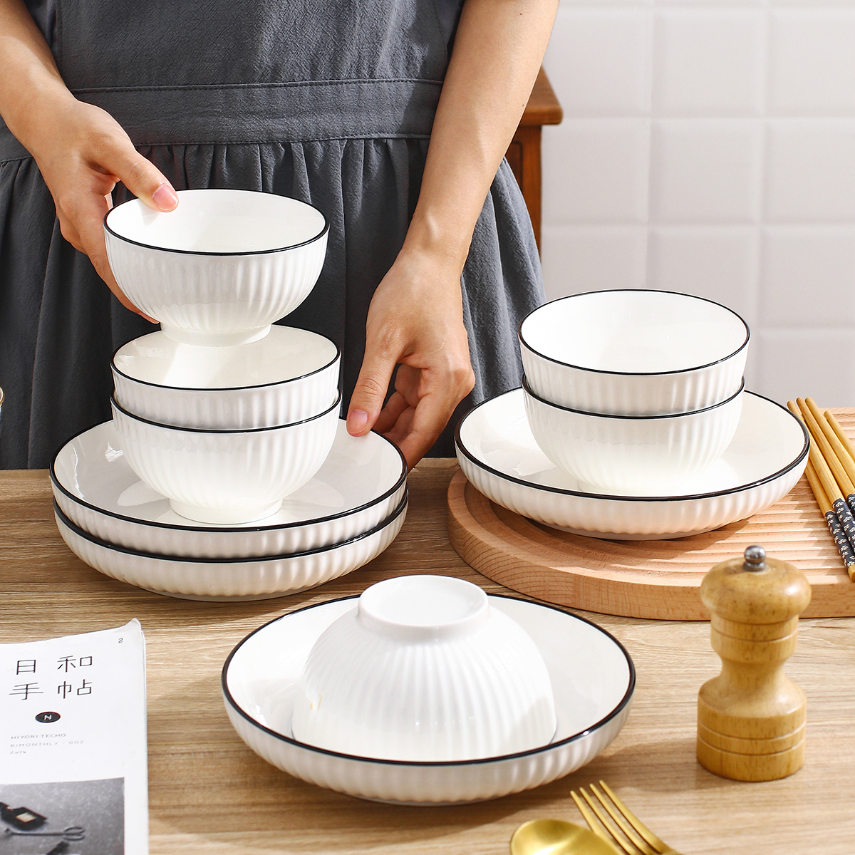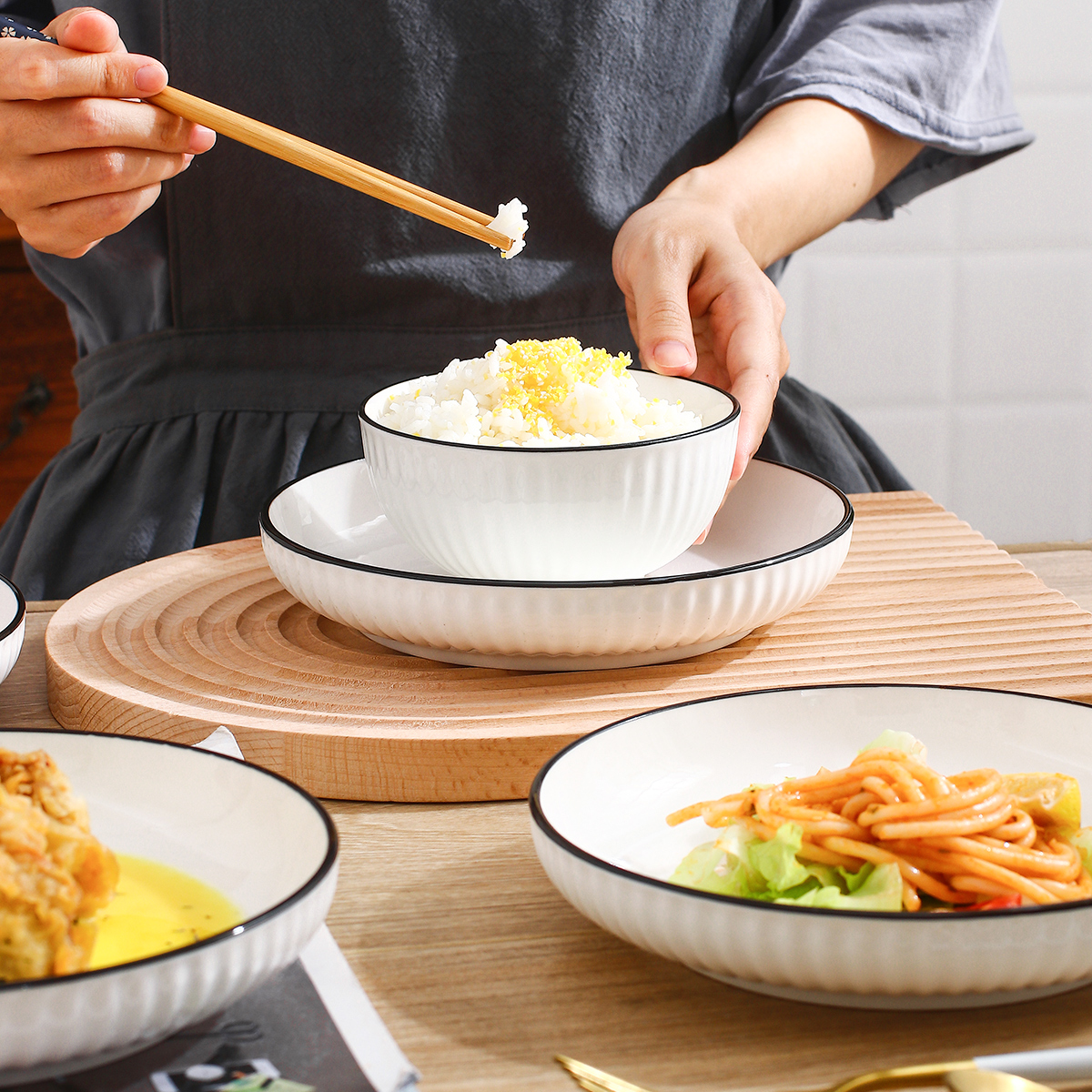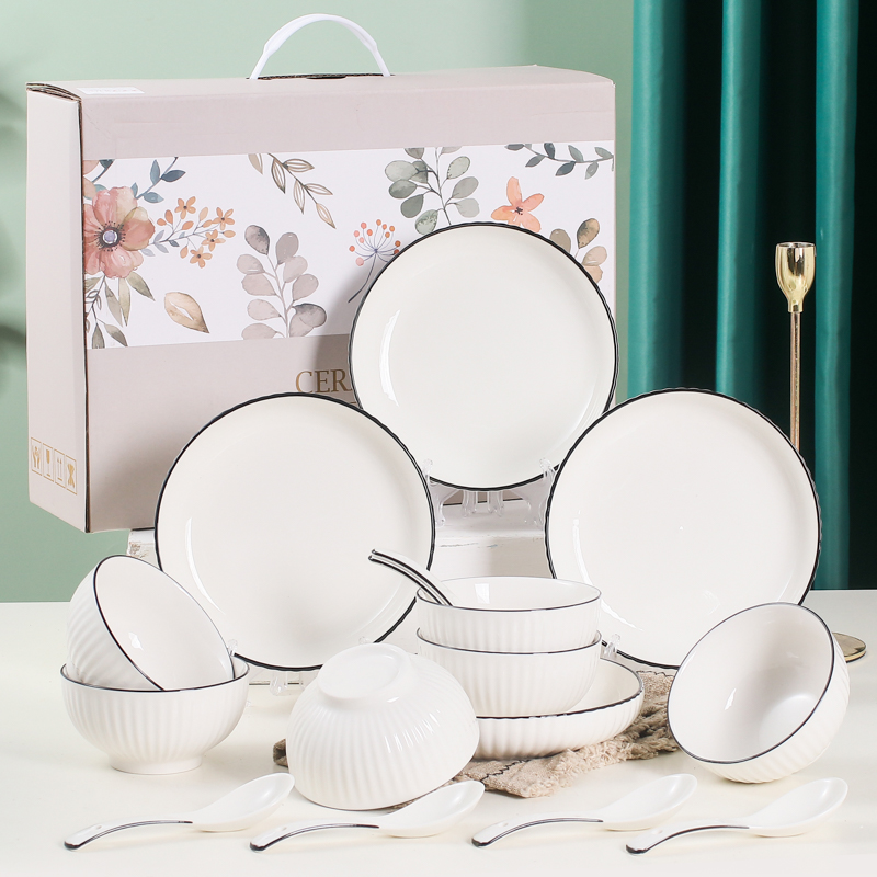 百斯克 爱家竖纹16件套 餐具套装 4.5英寸碗*6 三弯勺*6 7英寸盘*4 (单位: 套) 本白色
