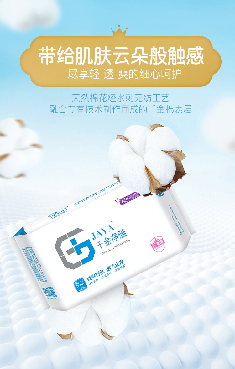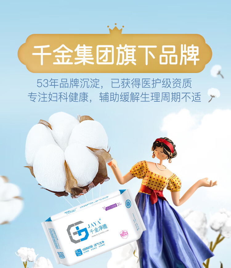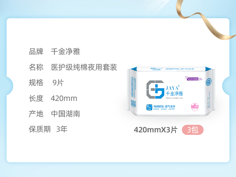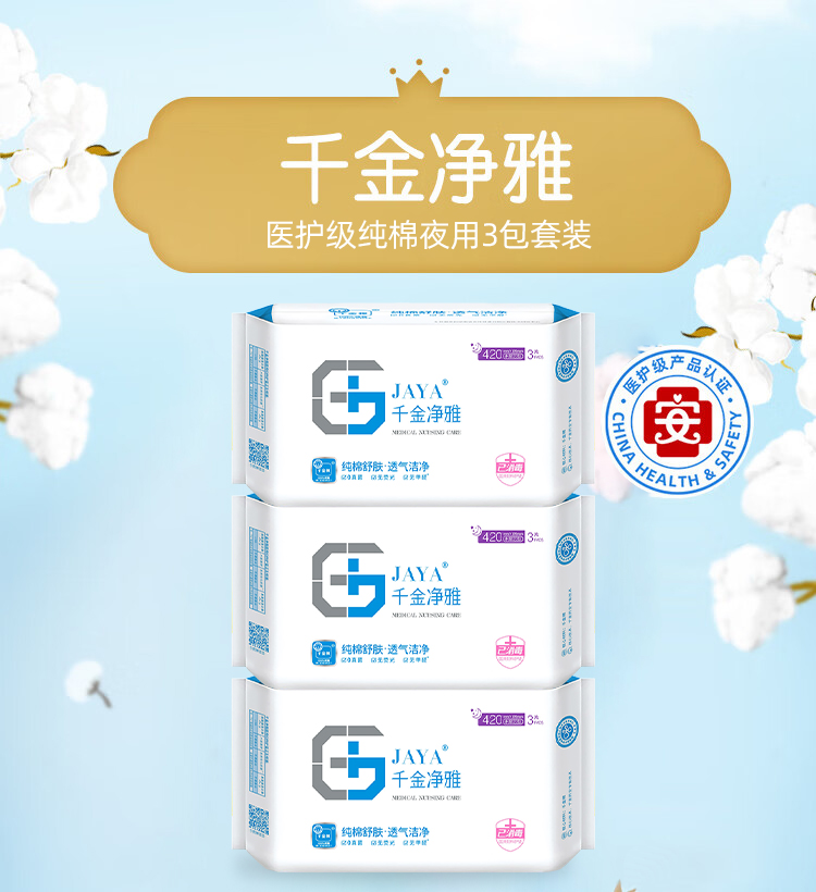 千金净雅妇科专用棉巾卫生巾420特量超大型3片装*3包(单位:包) 白色