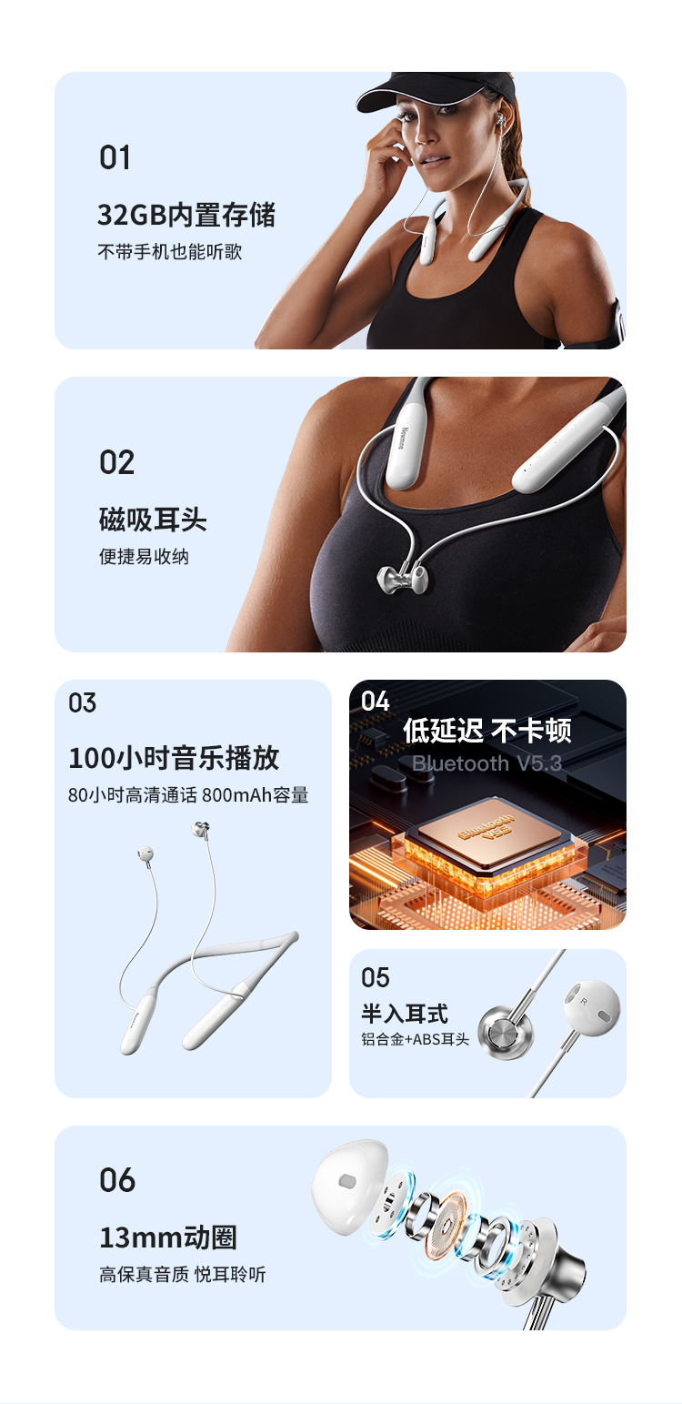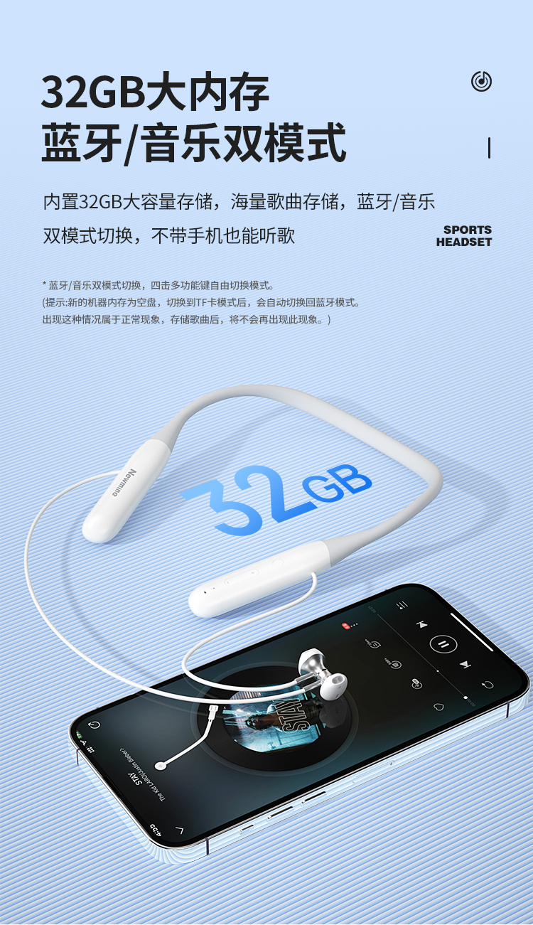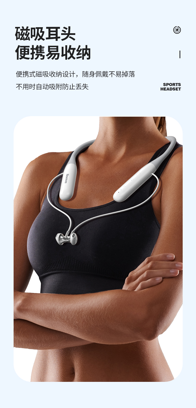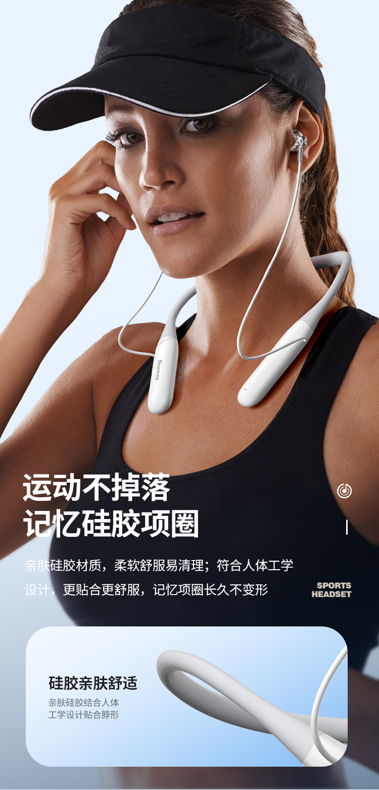 纽曼颈挂式运动蓝牙耳机超长续航蓝牙5.3降噪HIFI音质跑步音乐E030 单位:个 白色