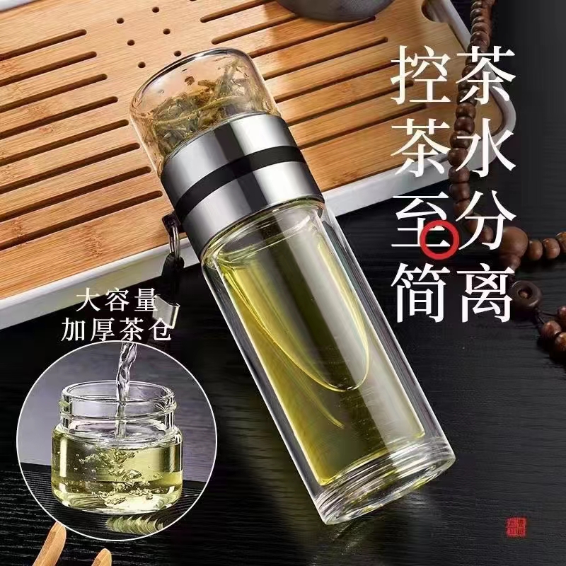 百斯克 BSK-5916 尊享泡茶师茶水分离双层 玻璃杯 400ml (单位: 个) 无色