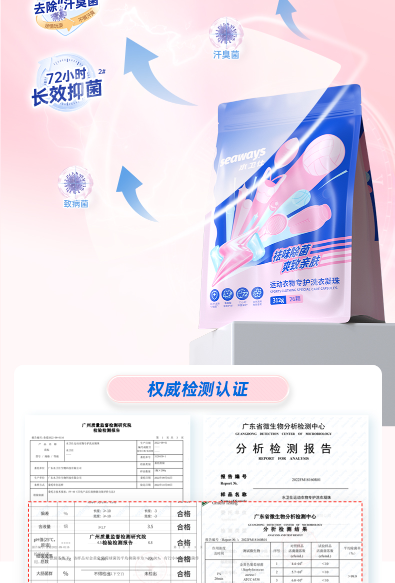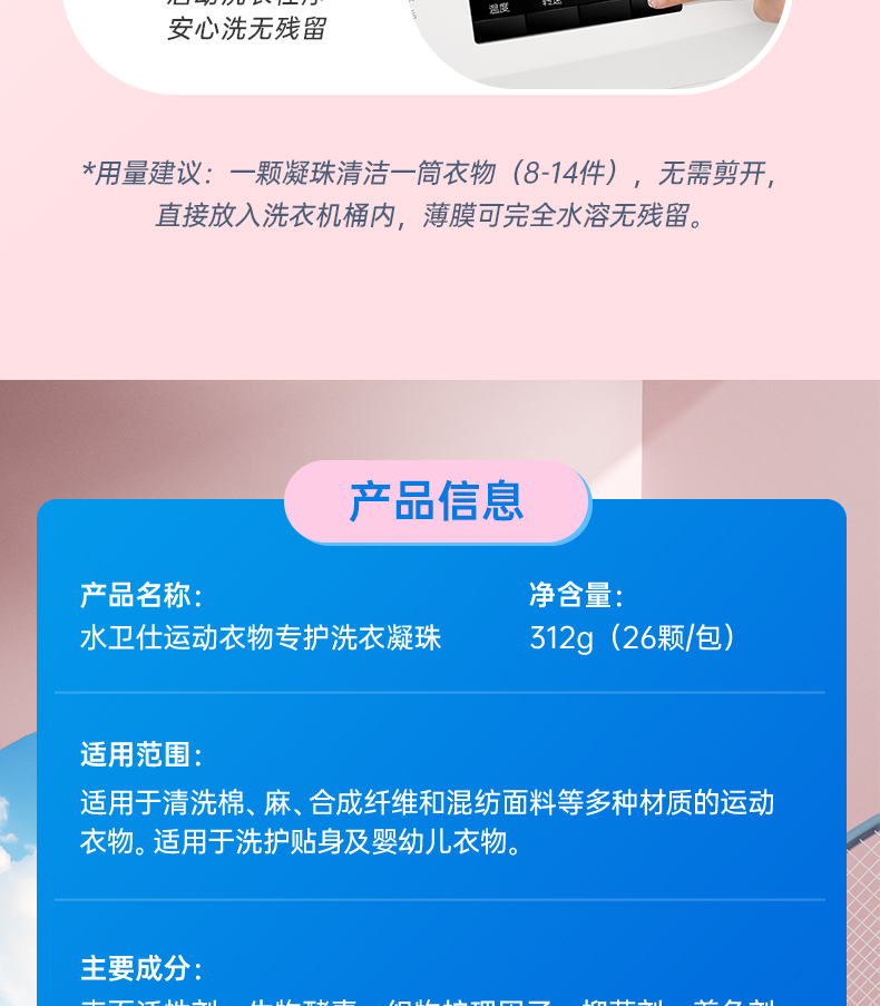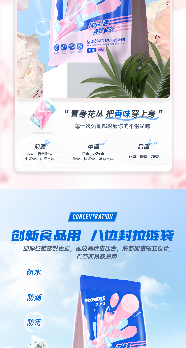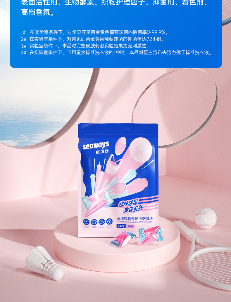 水卫仕 运动衣物专护洗衣凝珠 312g×1袋 宝石蓝