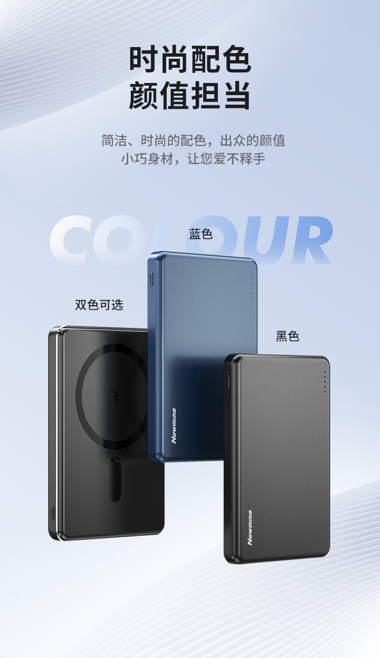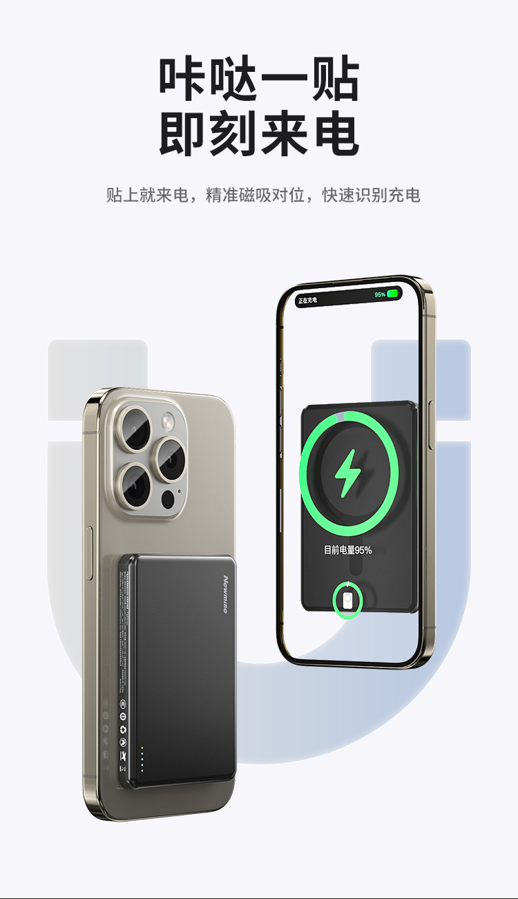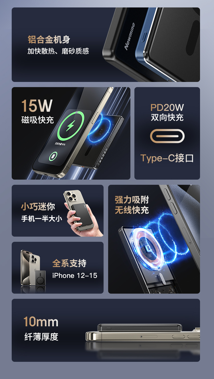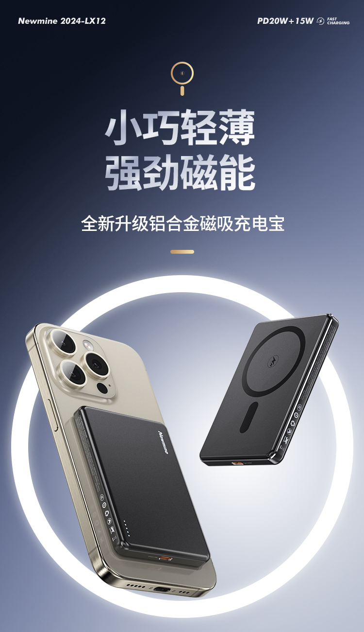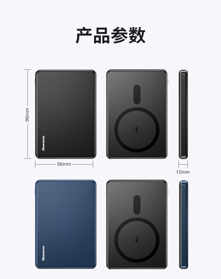 纽曼金属磁吸无线15W充电宝5000毫安移动电源PD20W双向快充LX12 单位:个 黑色