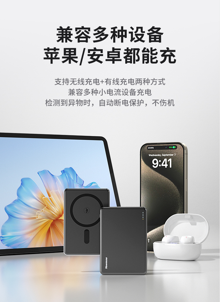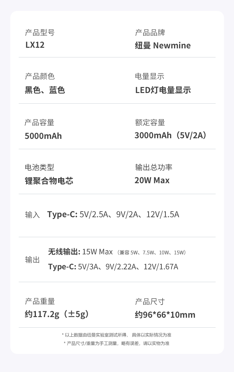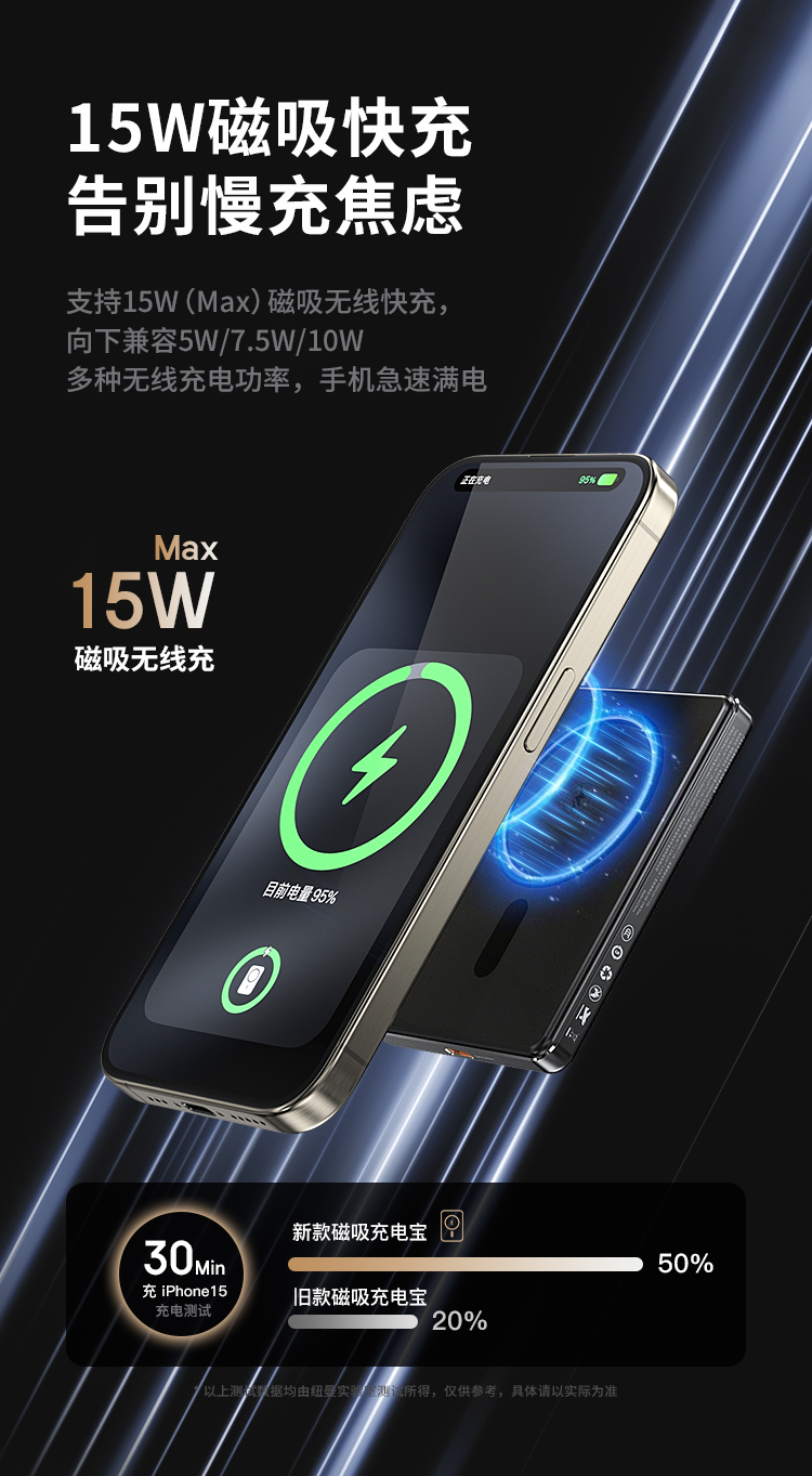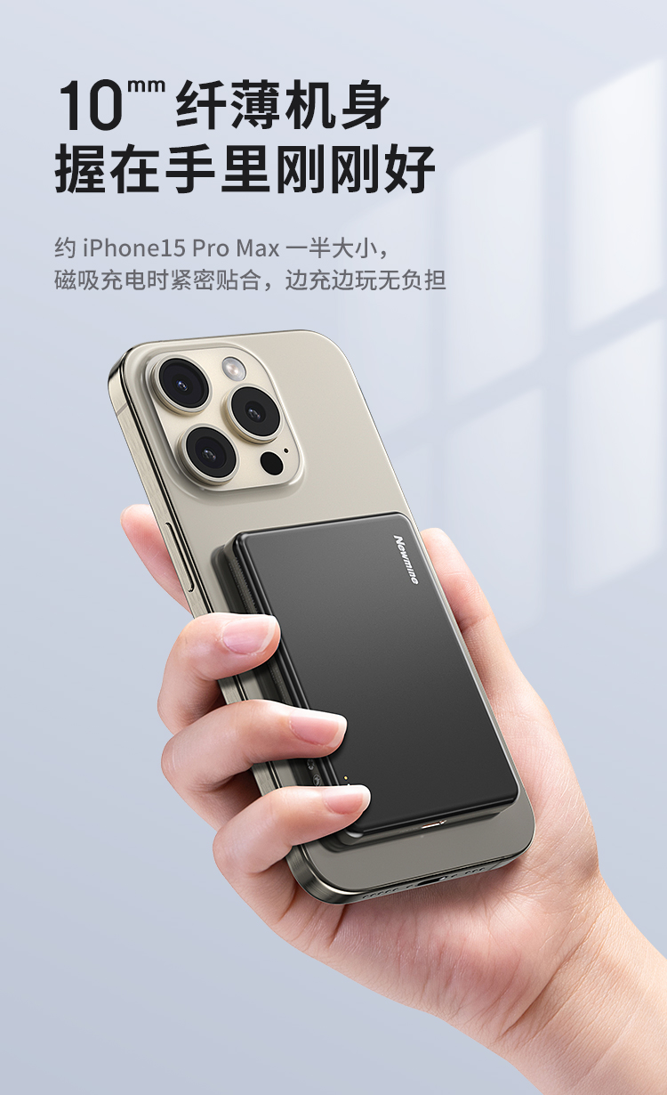 纽曼金属磁吸无线15W充电宝5000毫安移动电源PD20W双向快充LX12 单位:个 黑色