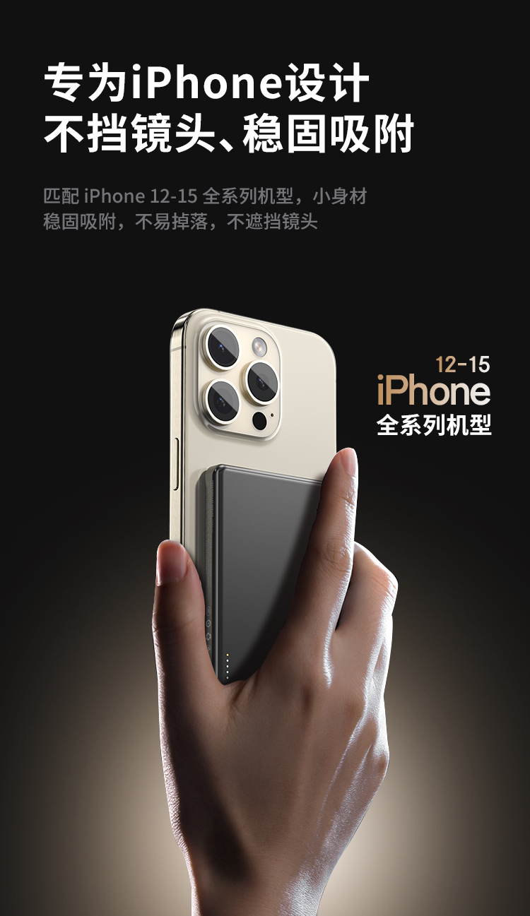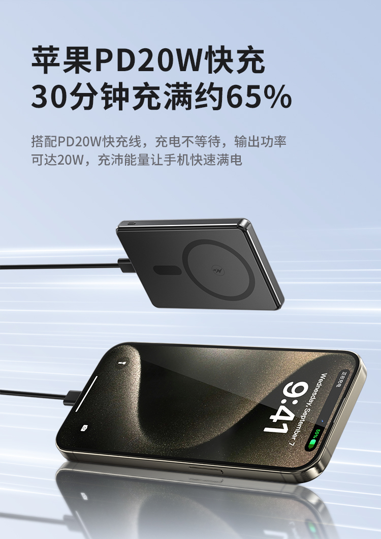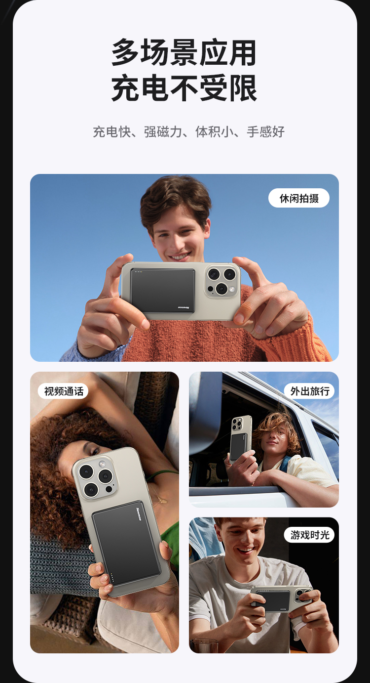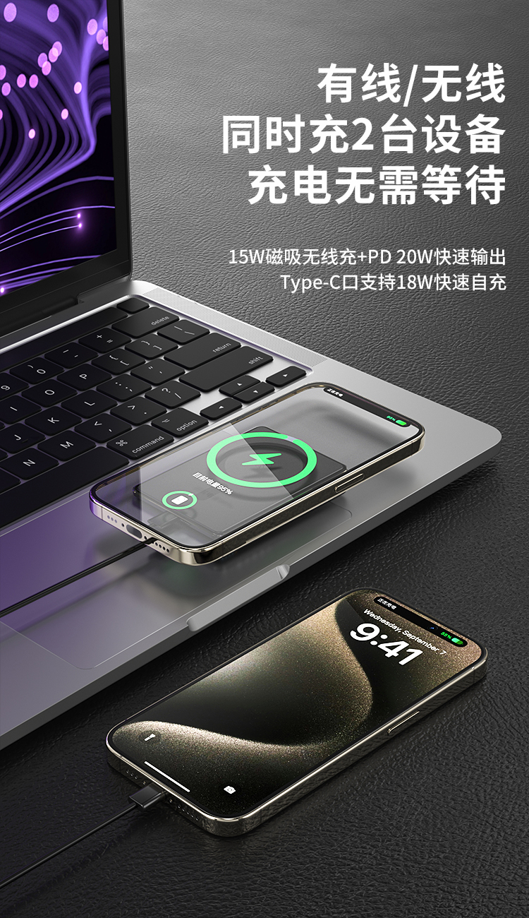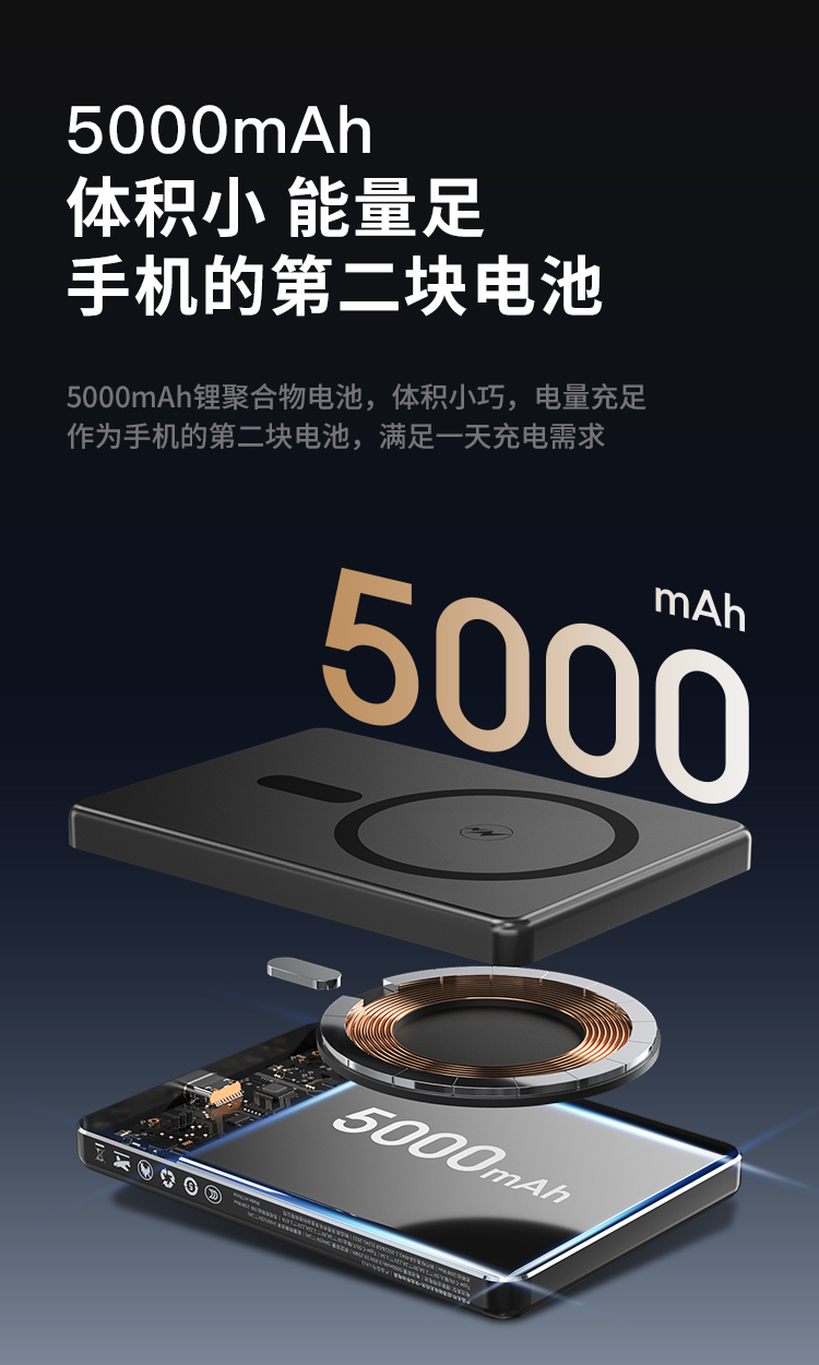 纽曼金属磁吸无线15W充电宝5000毫安移动电源PD20W双向快充LX12 单位:个 黑色