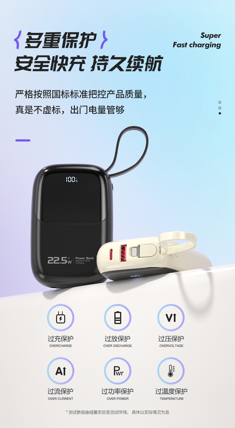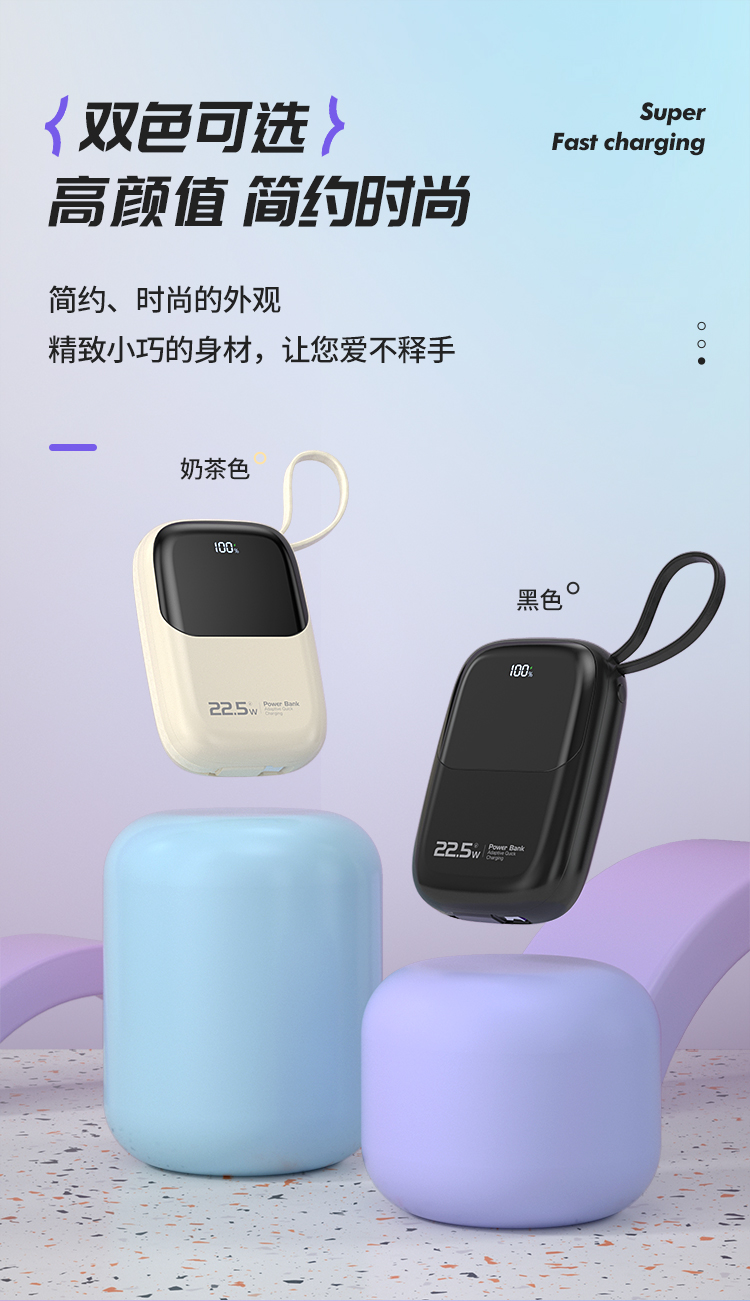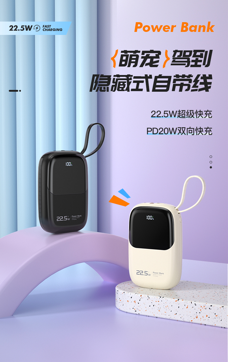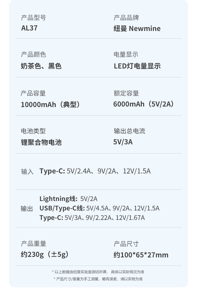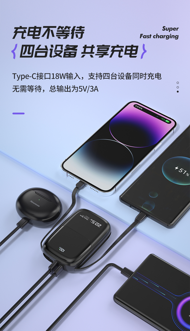 纽曼自带线22.5W超级快充移动电源10000毫安充电宝四输出AL37 单位:个 黑色