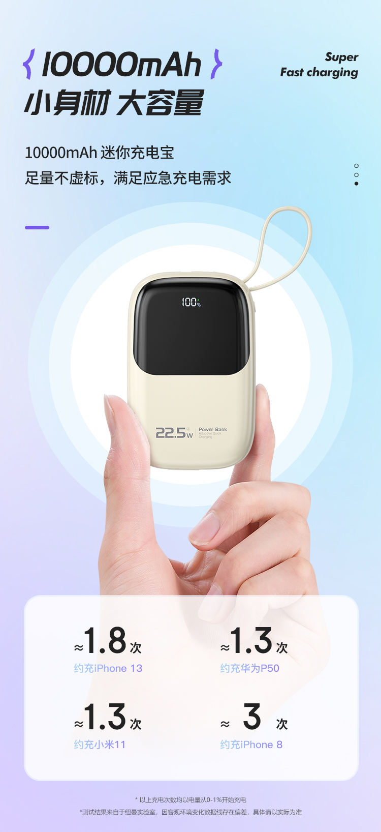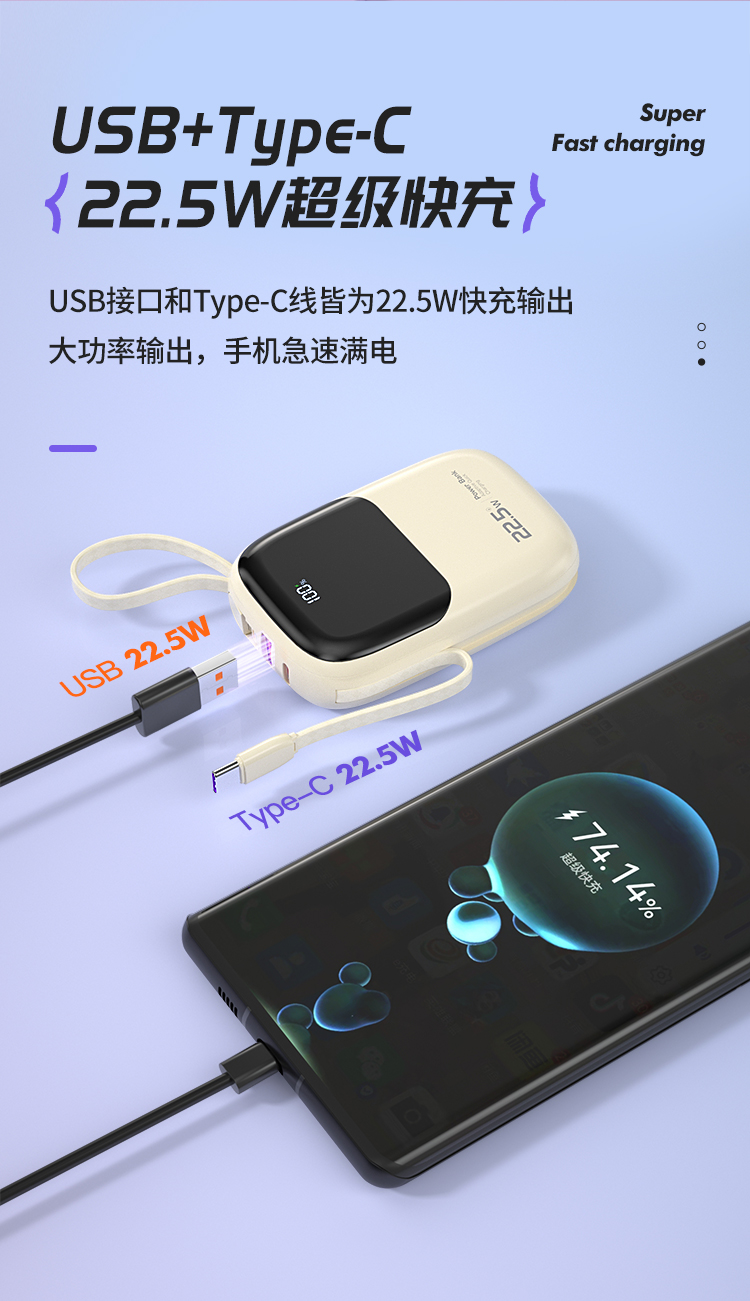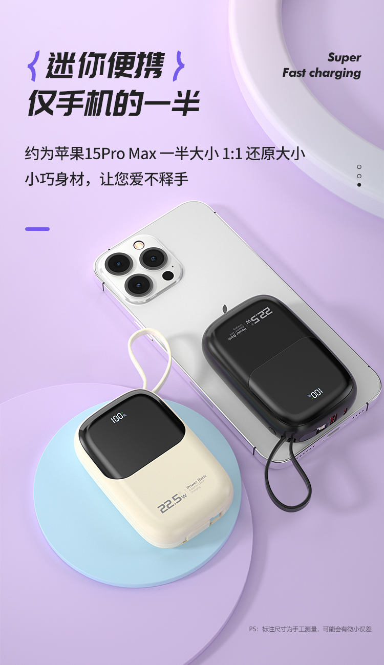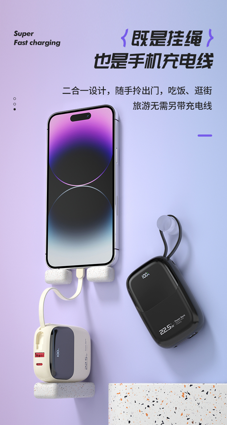 纽曼自带线22.5W超级快充移动电源10000毫安充电宝四输出AL37 单位:个 黑色
