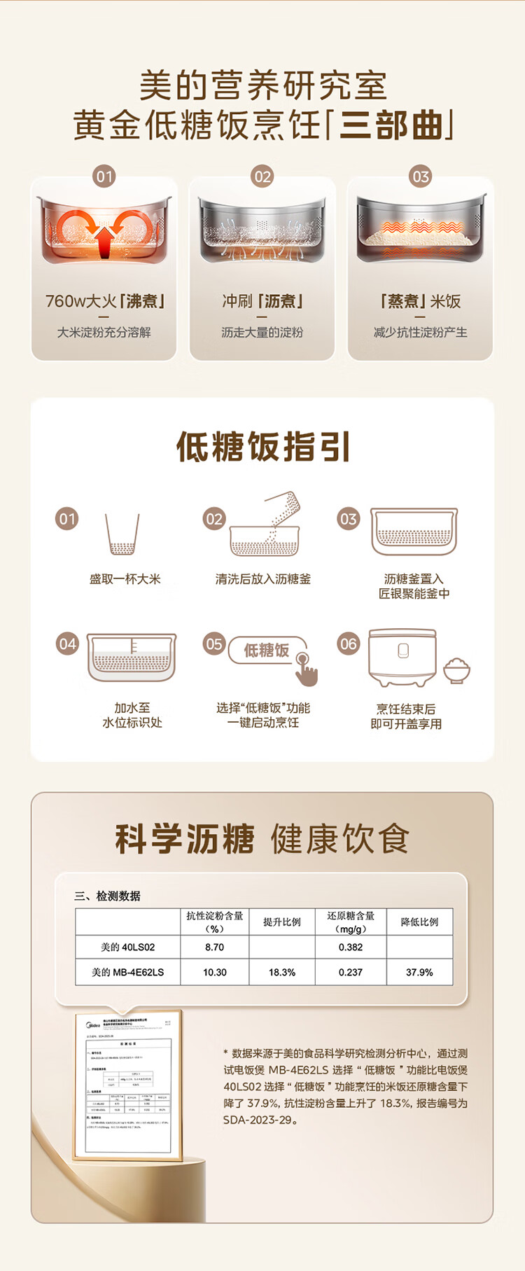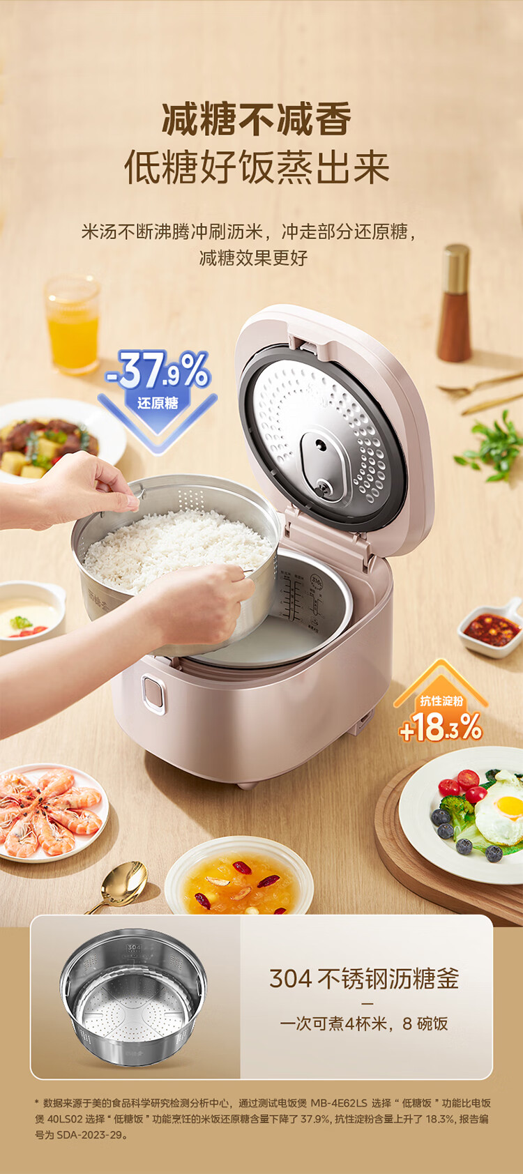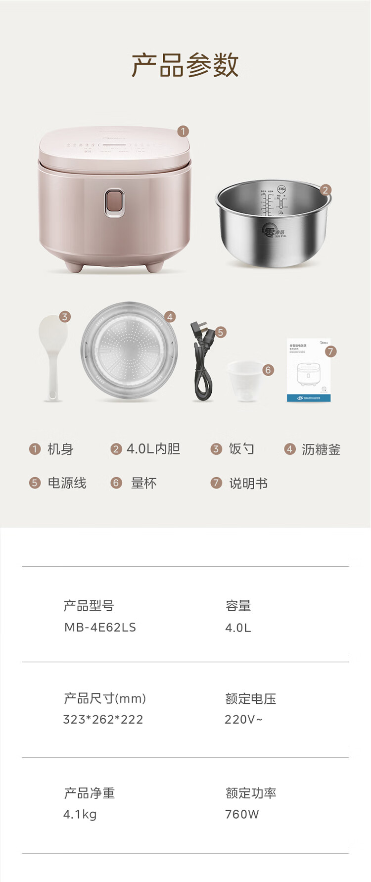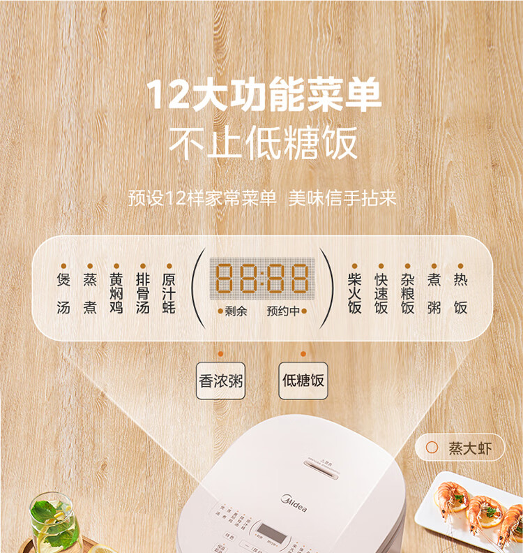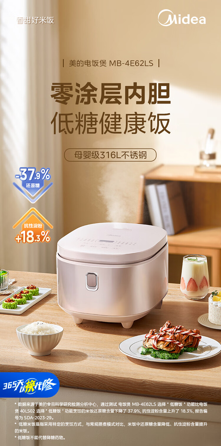 美的低糖电饭煲MB-4E62LS 4升大容量(单位:台) 金色