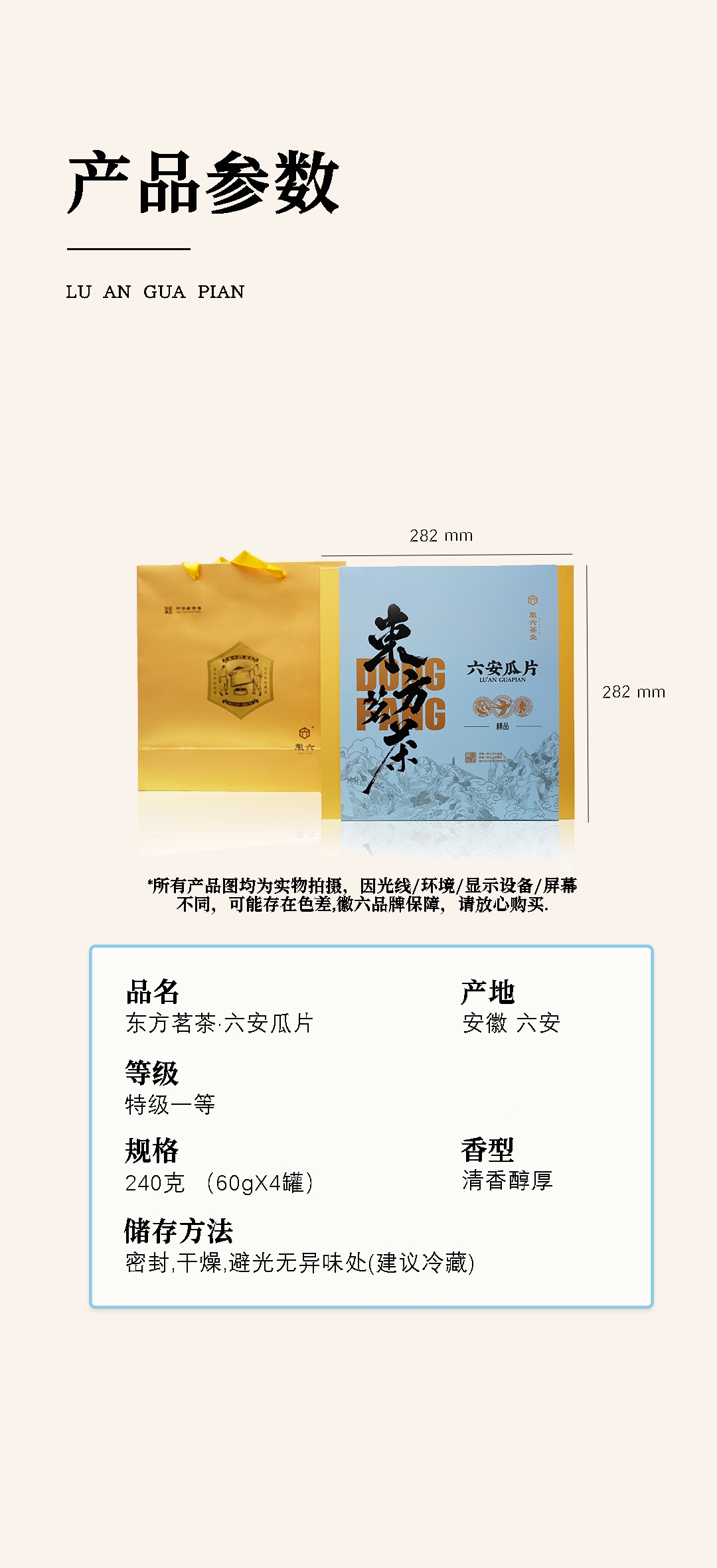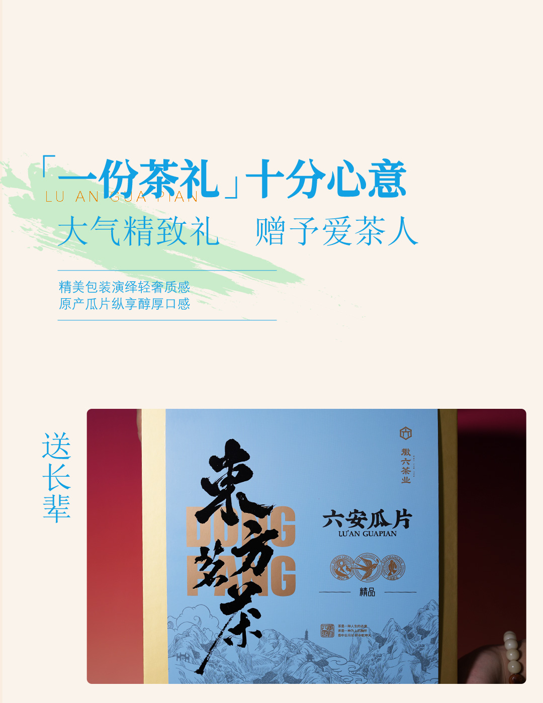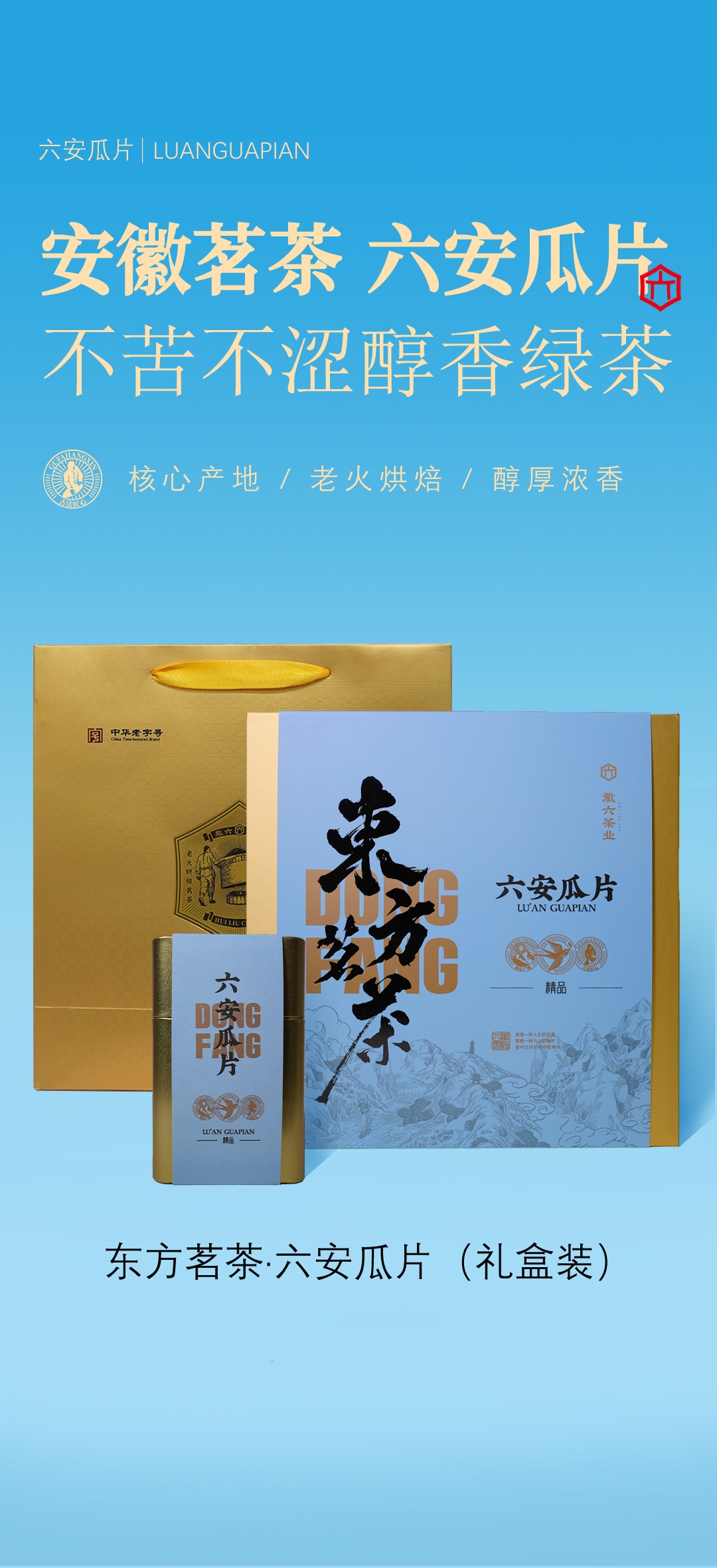 徽六 六安瓜片 240g 特一级东方茗茶礼盒 天蓝色(单位:盒)