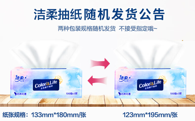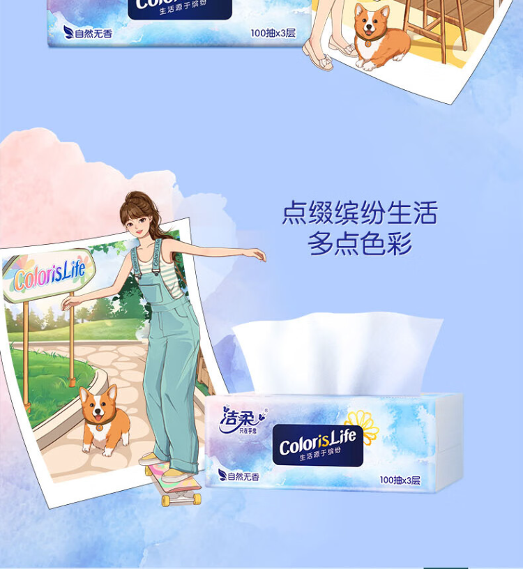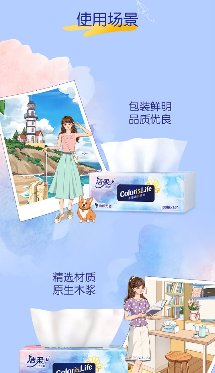 洁柔 OR213-24R 3层100抽24包 抽纸缤纷系列 天蓝色(单位:箱)