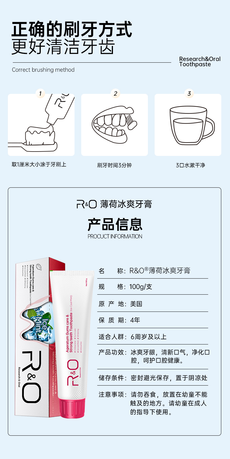 R&O 薄荷冰爽 100g/支 牙膏 玫瑰红色(单位:支)