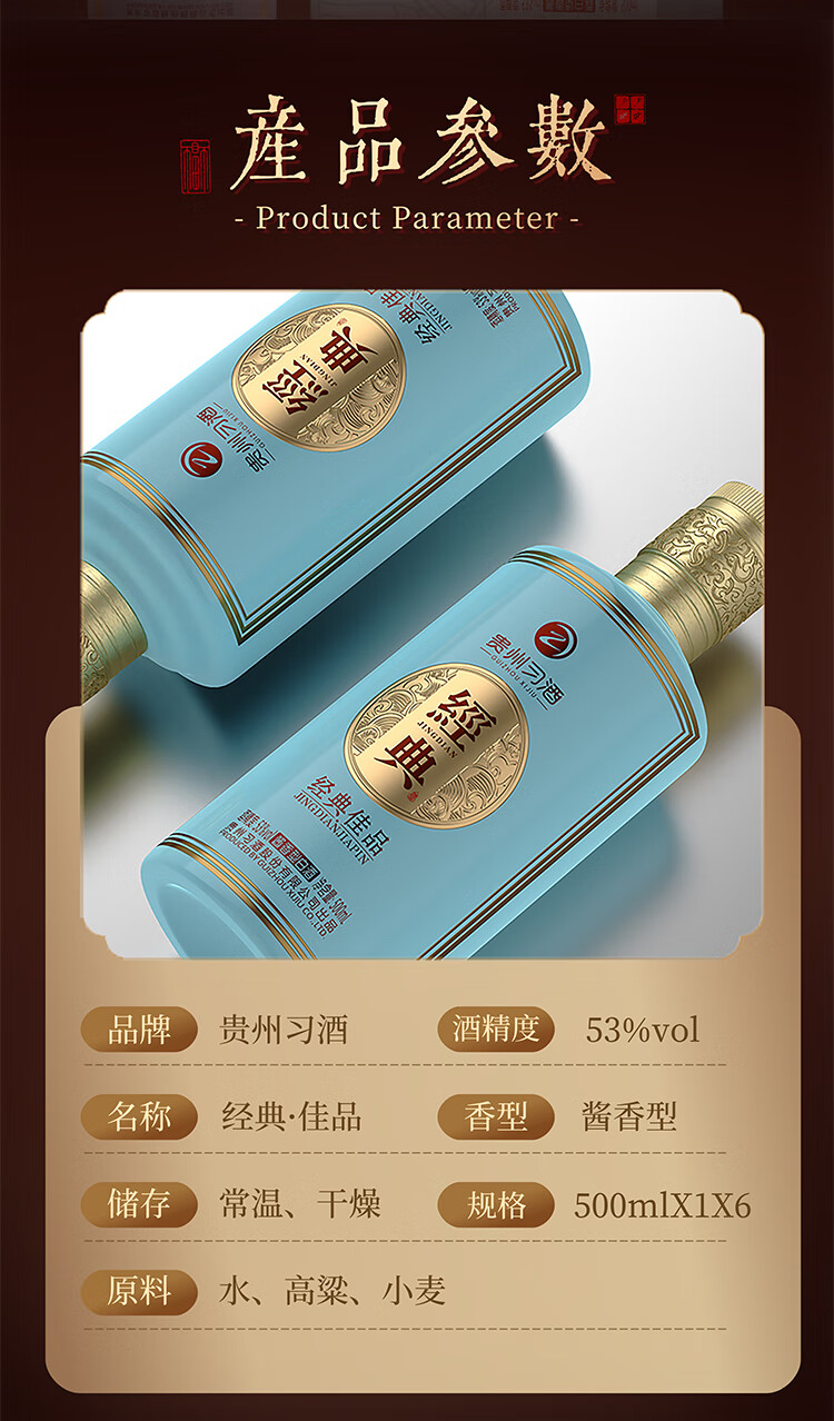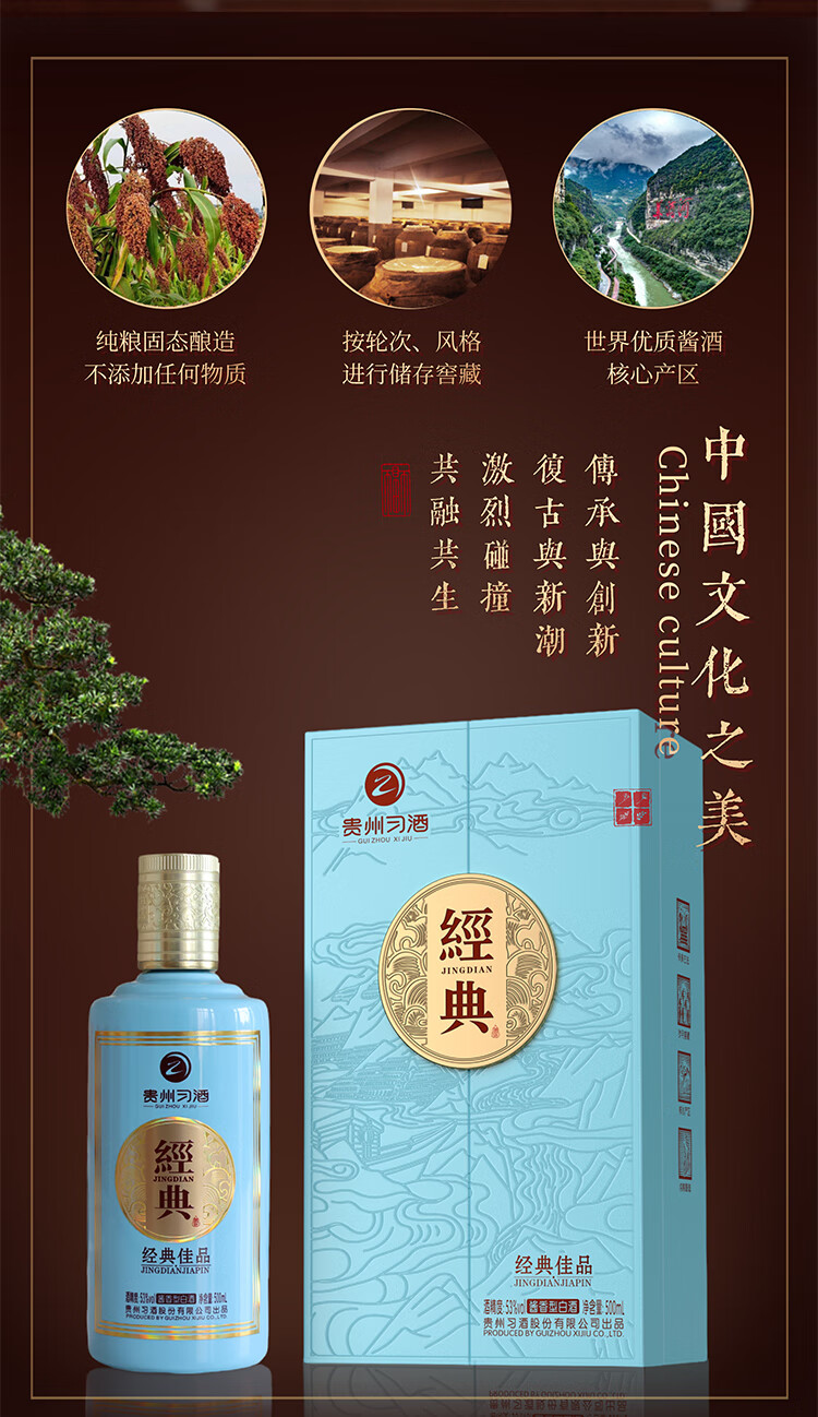 习酒 经典佳品 500ml*2瓶礼盒装 53度酱香型白酒 蓝色(单位:套)