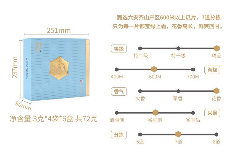 徽六 六安瓜片 72g 潜香5000伴手礼 天蓝色(单位:盒)