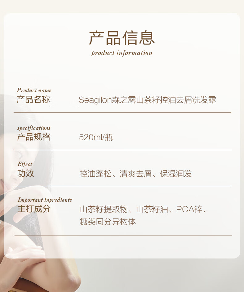 森之露(Seagilon) 洗发露 520ml 山茶籽控油去屑洗发露 混色(单位:瓶)