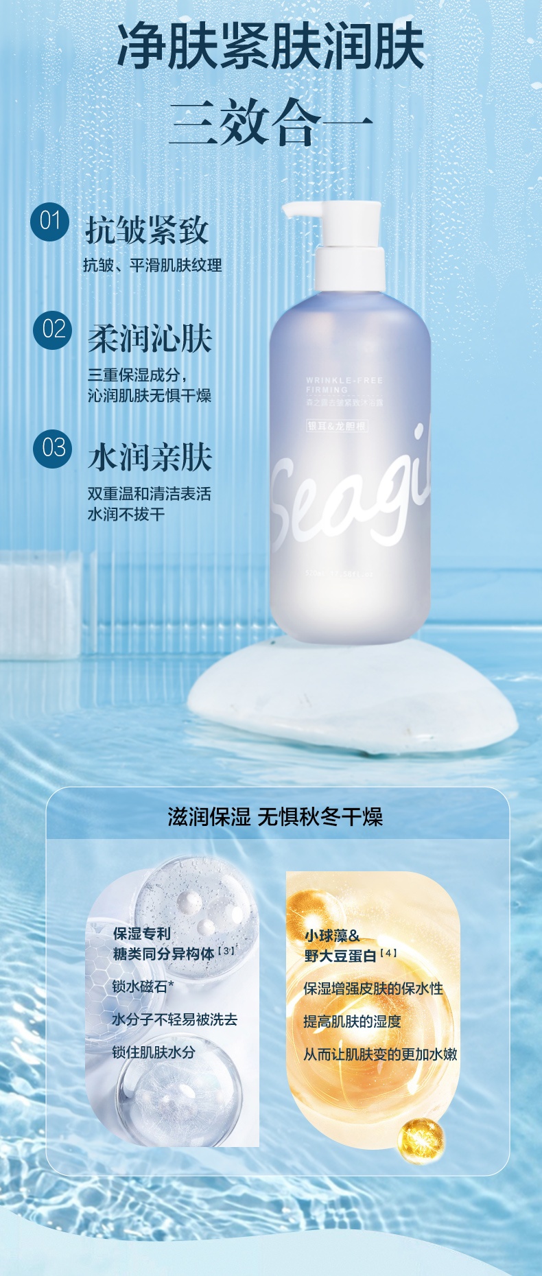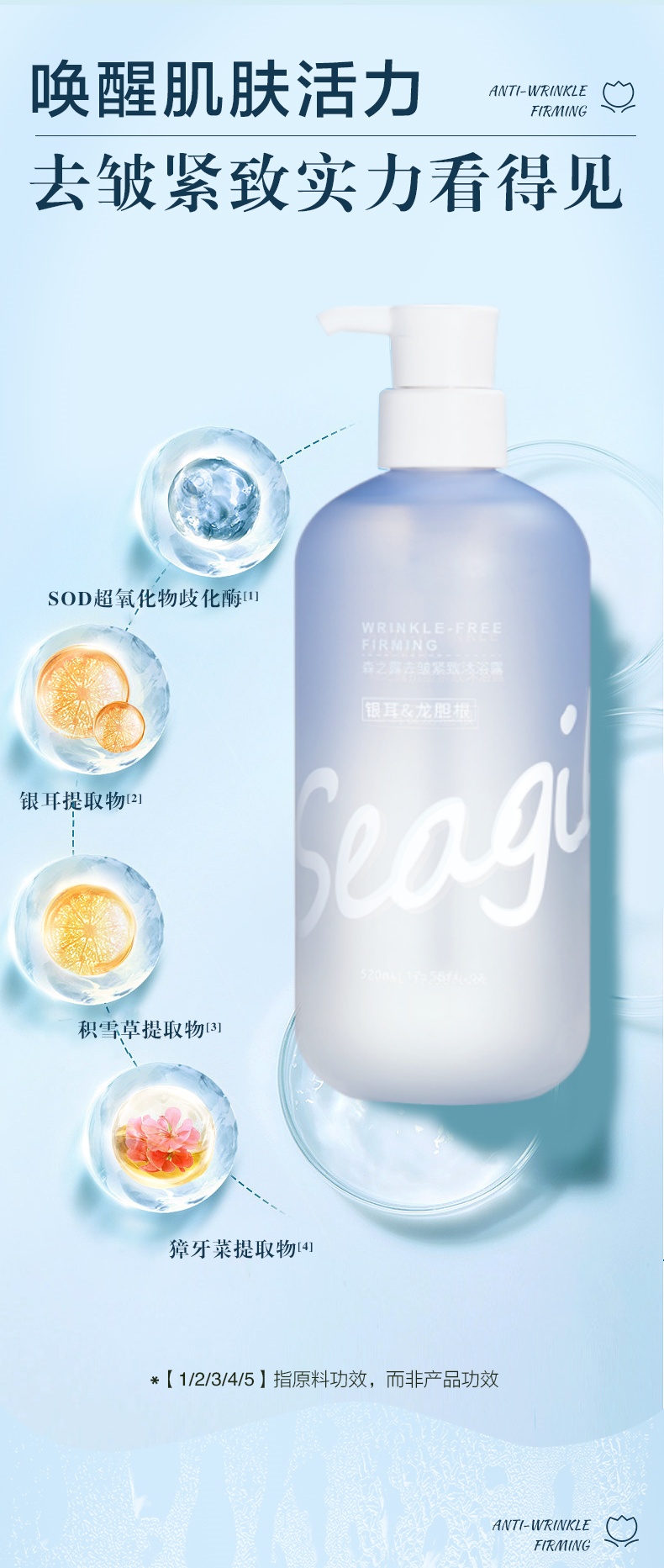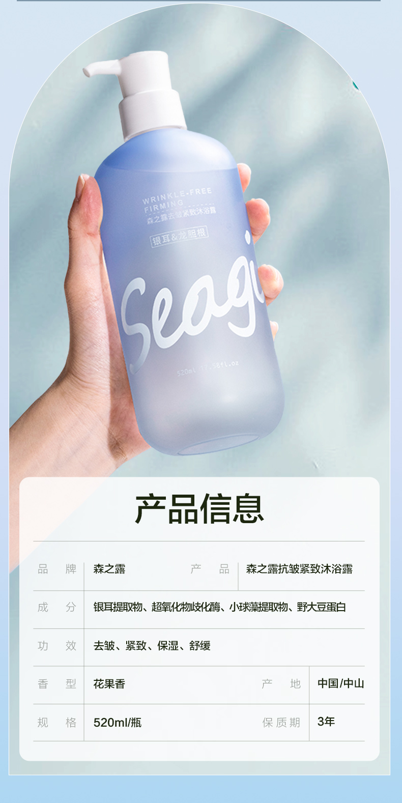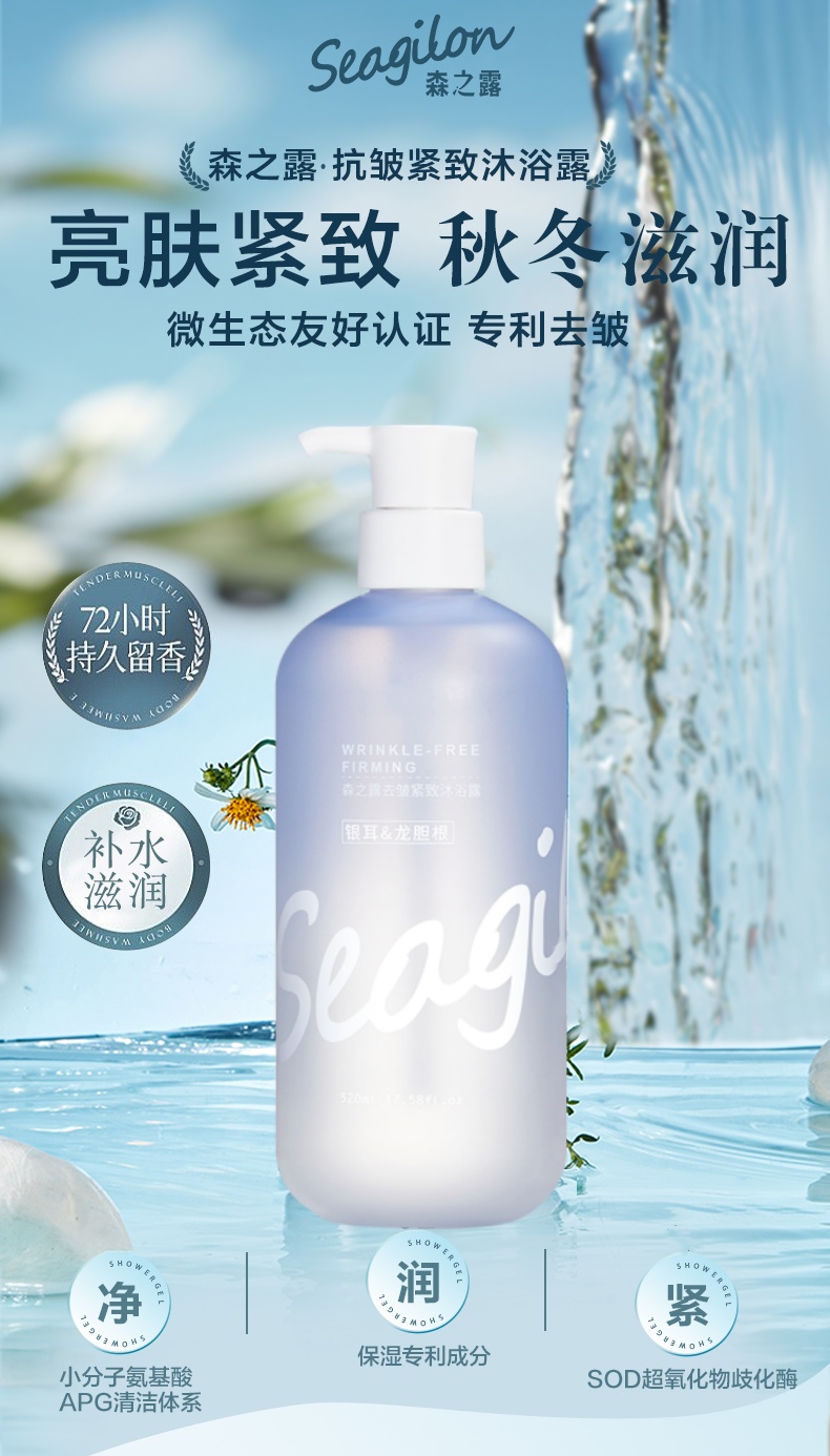 森之露(Seagilon) 沐浴露 520ml 抗皱紧致SZL-02 水蓝色(单位:支)